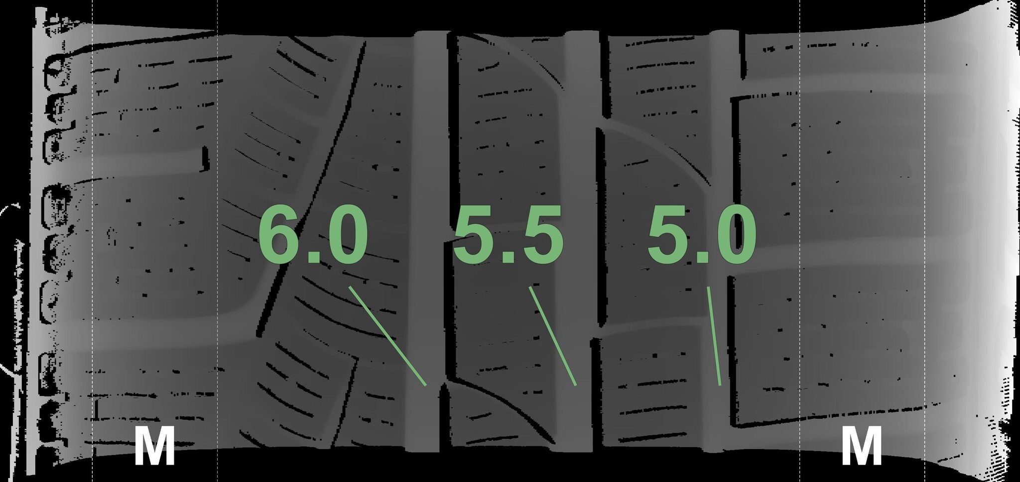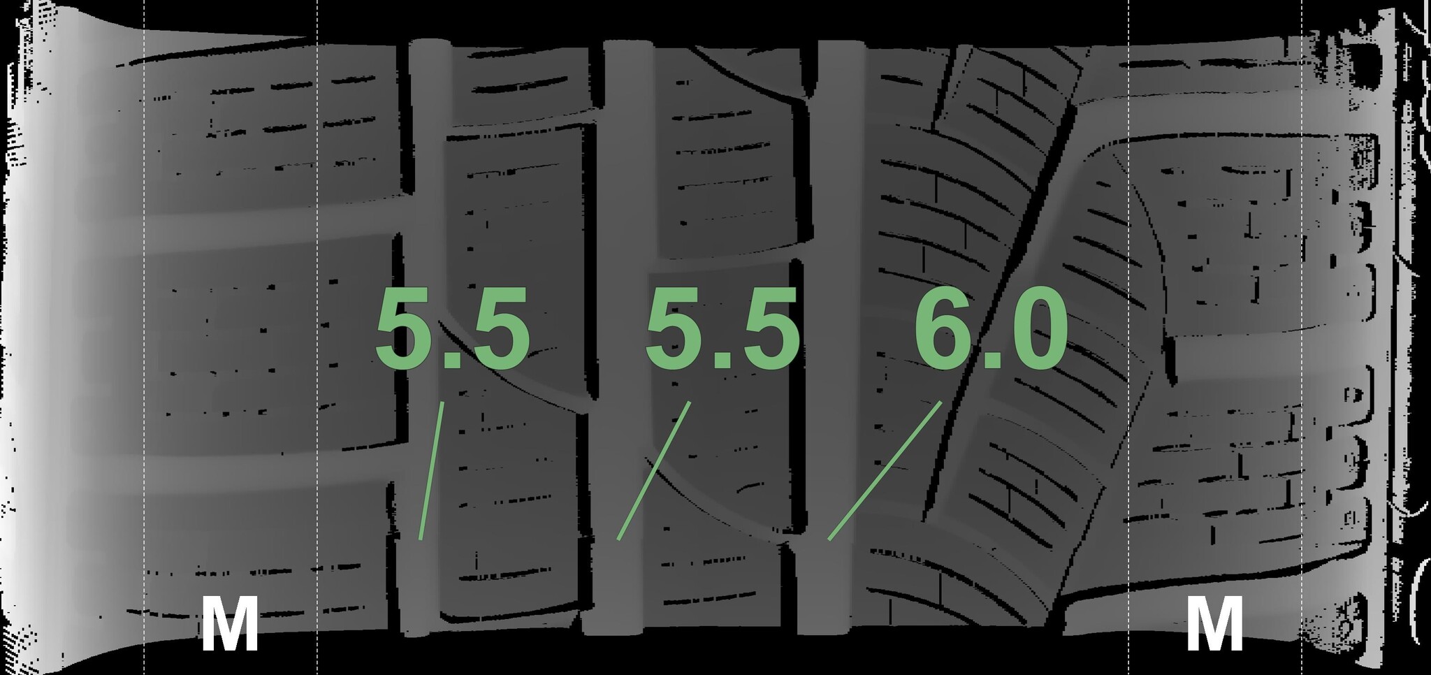 Condition | Profile depth | DOT | Front Left | Used | 5.5 mm | 2518 |