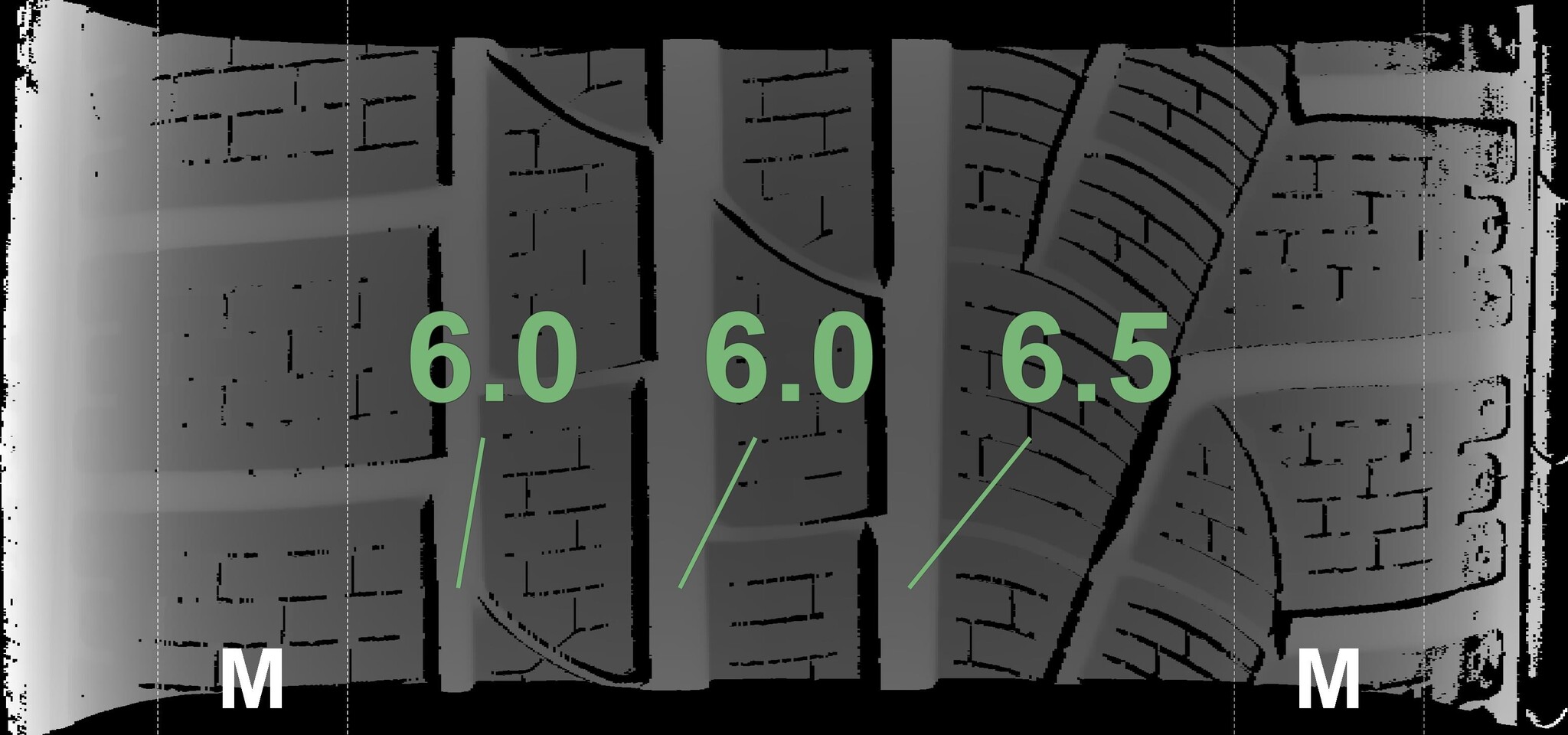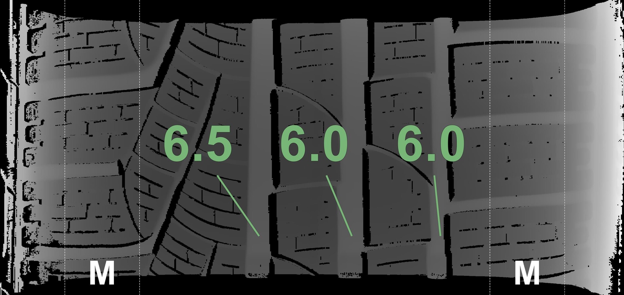 Condition | Profile depth | DOT | Front Right | Used | 6.0 mm | 2518 |