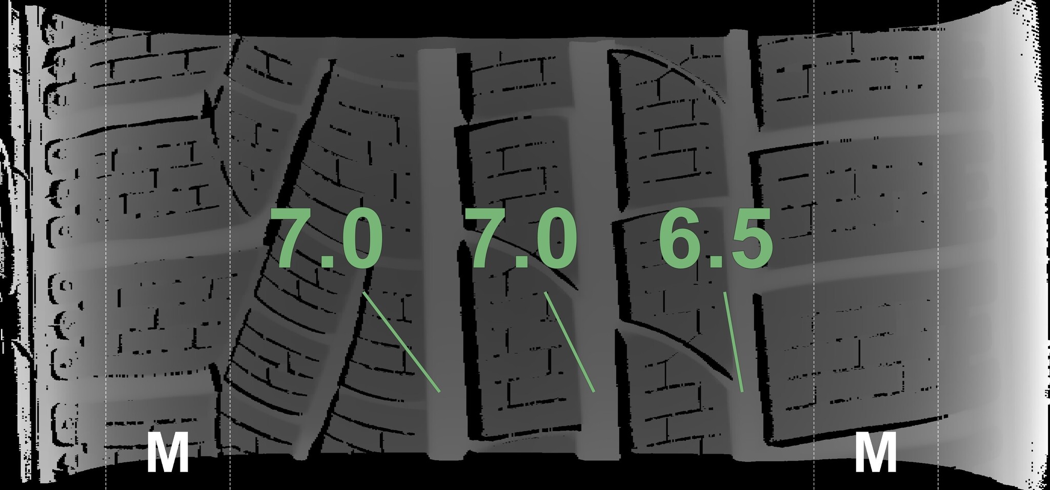 Condition | Profile depth | DOT | Front Right | Used | 6.0 mm | 1019 |