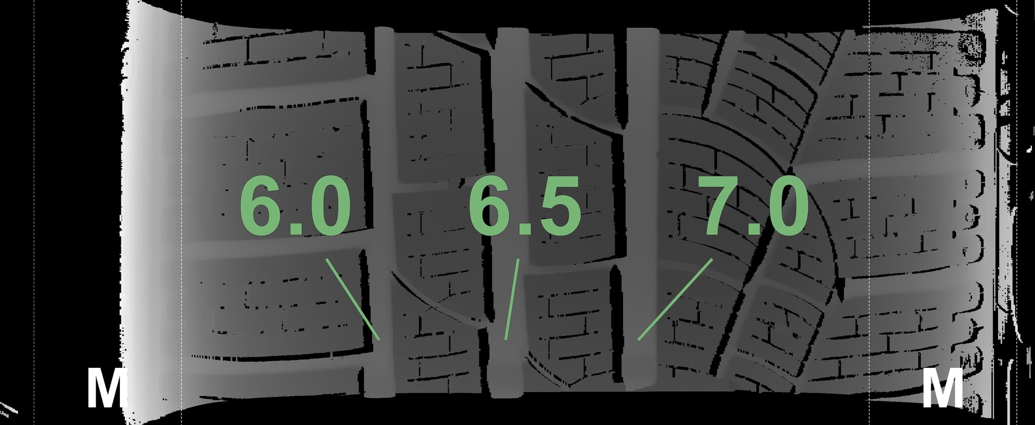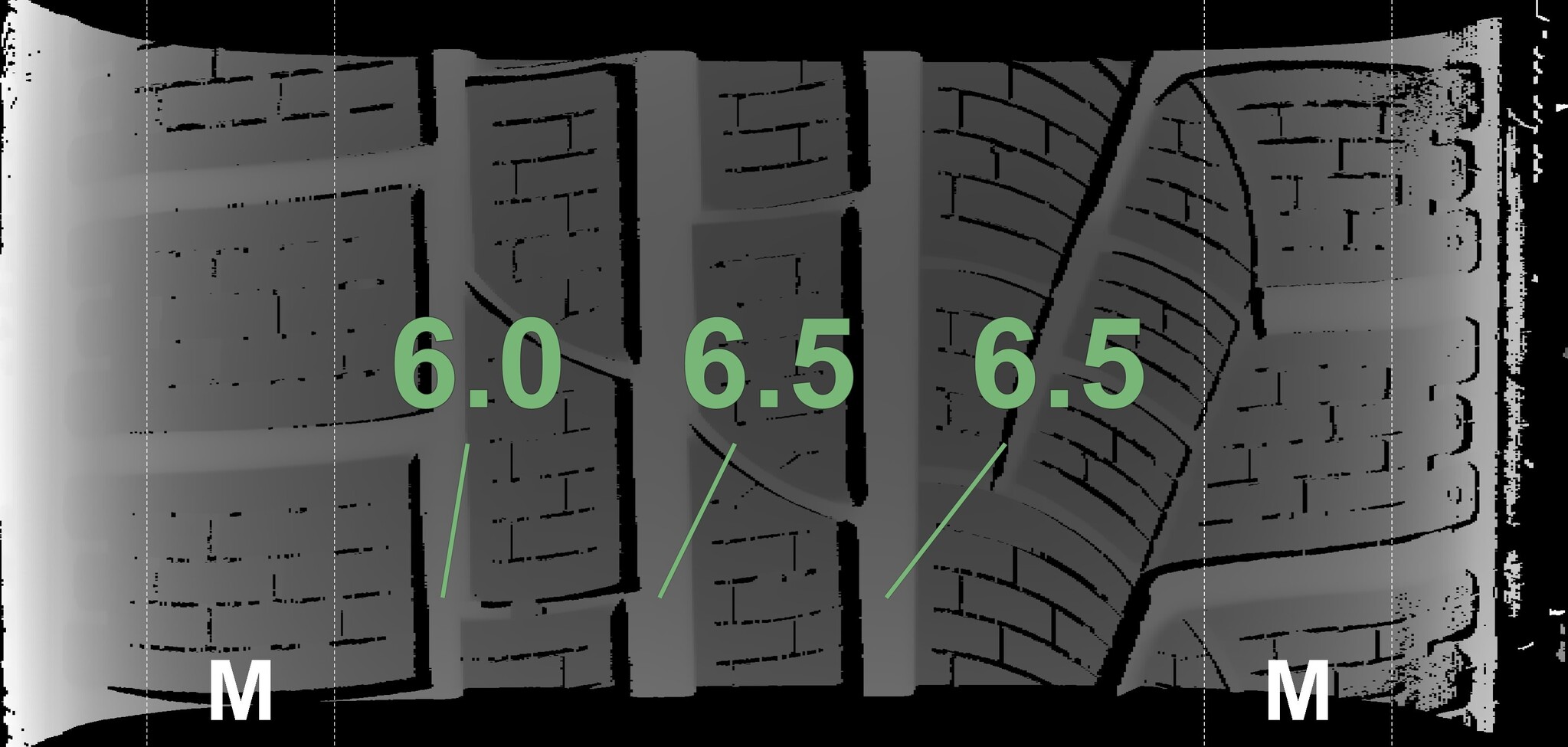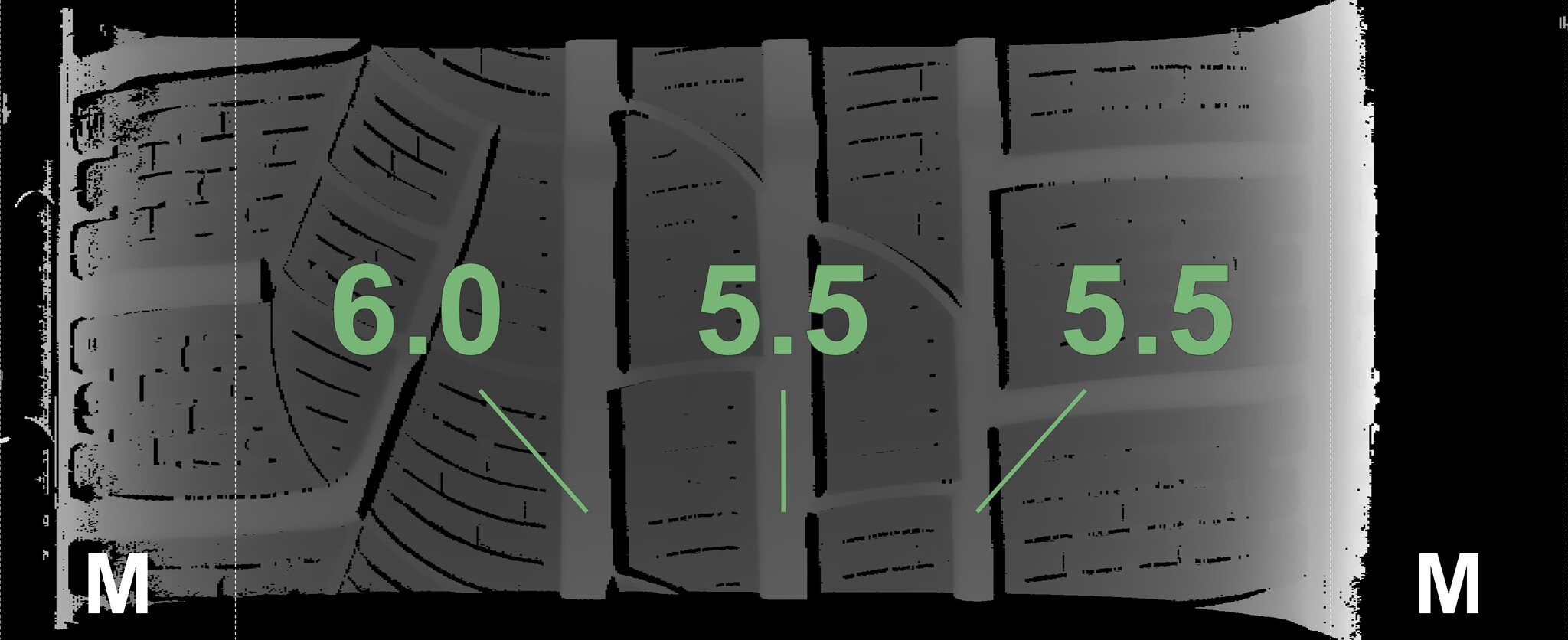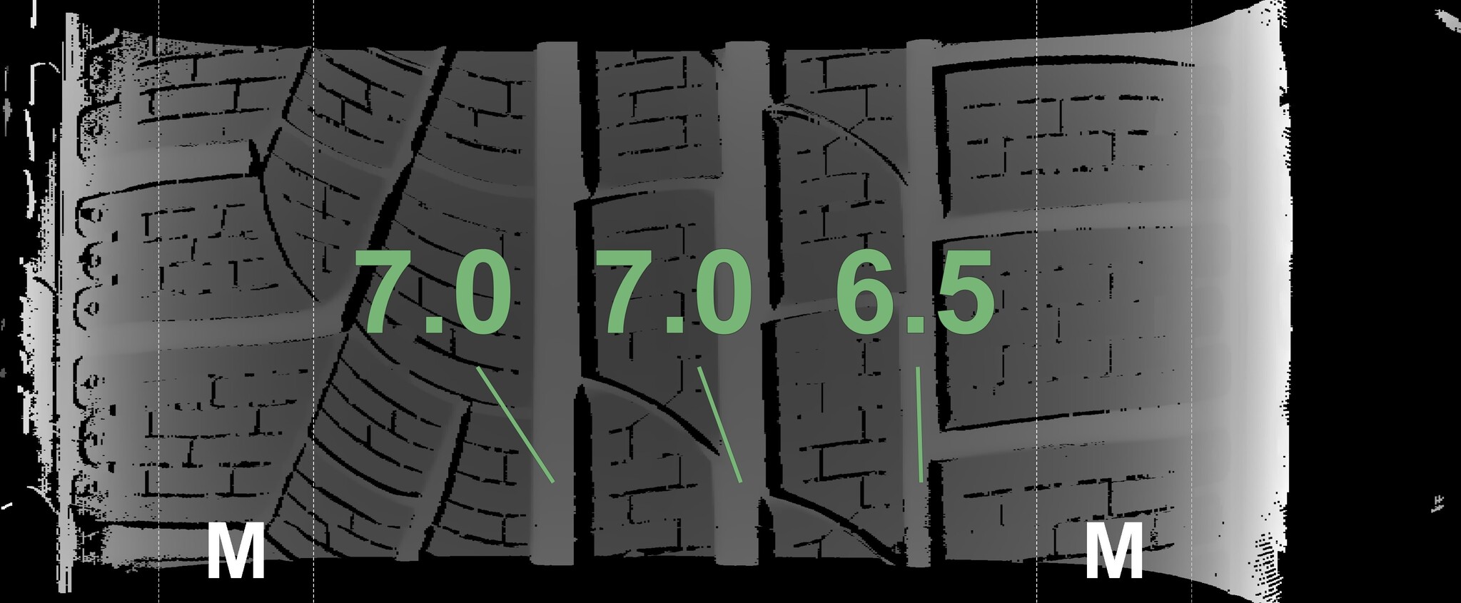 The measured tread depths and details of the rims are shown above.