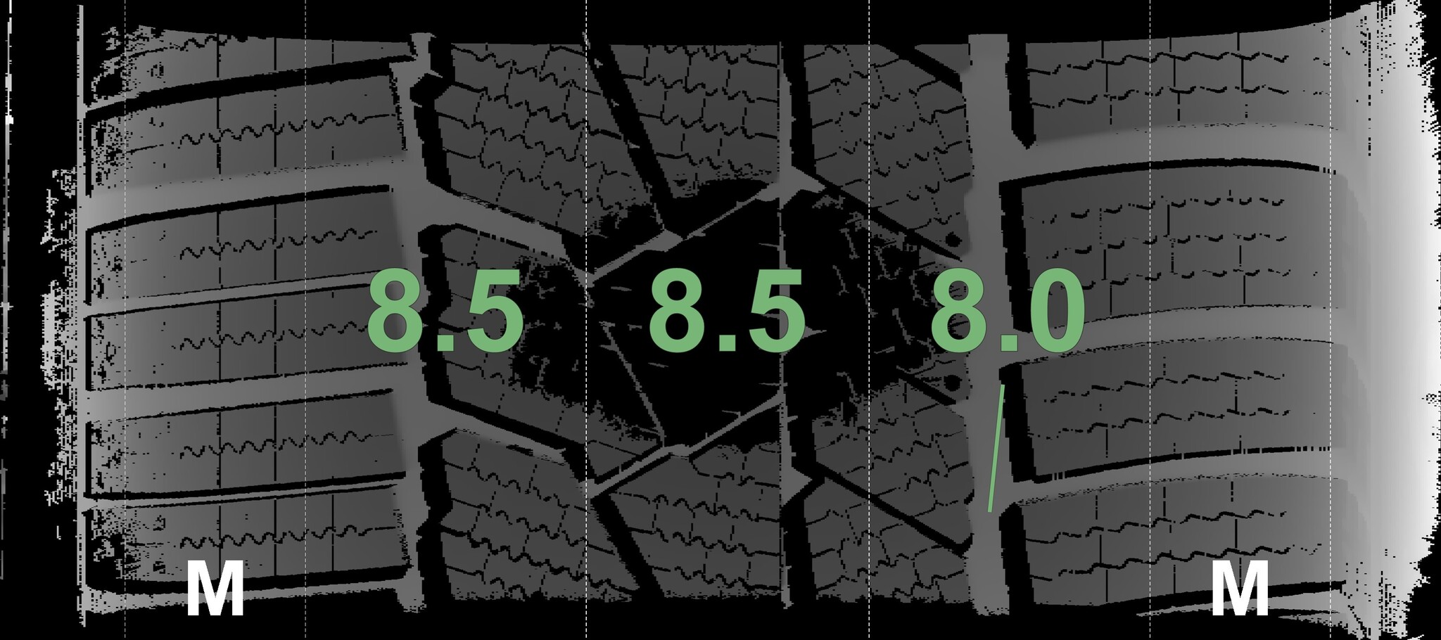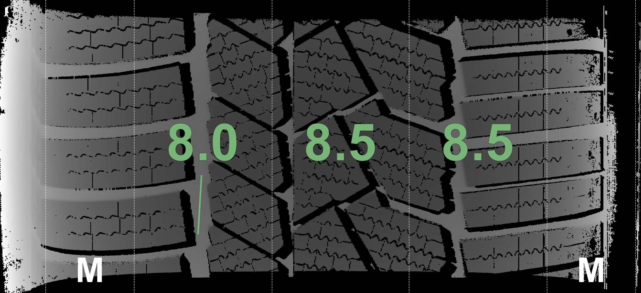 Condition | Profile depth | DOT | Rear Right | New | 8.0 mm | 1825 |