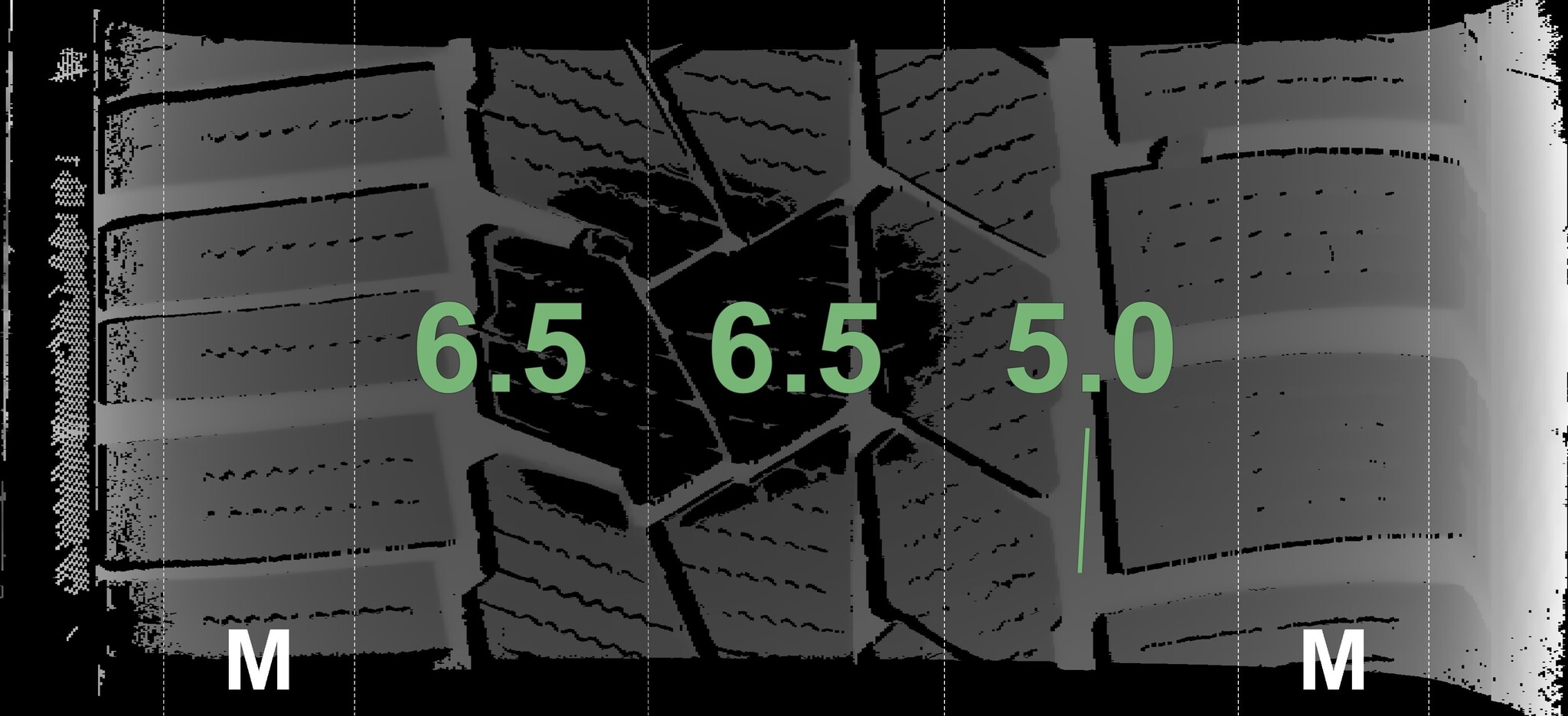 Condition | Profile depth | DOT | Front Right | Used | 5.0 mm | 3721 |