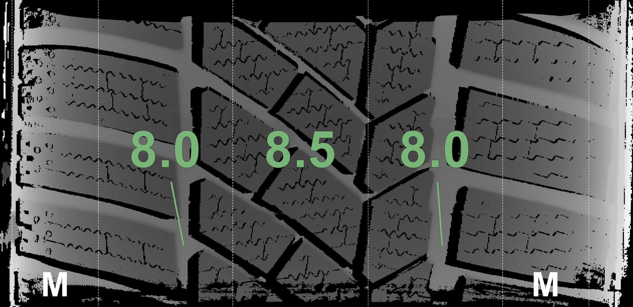 | Condition | Profile depth | DOT | Front Left | New | 8.3 mm | 2520 |