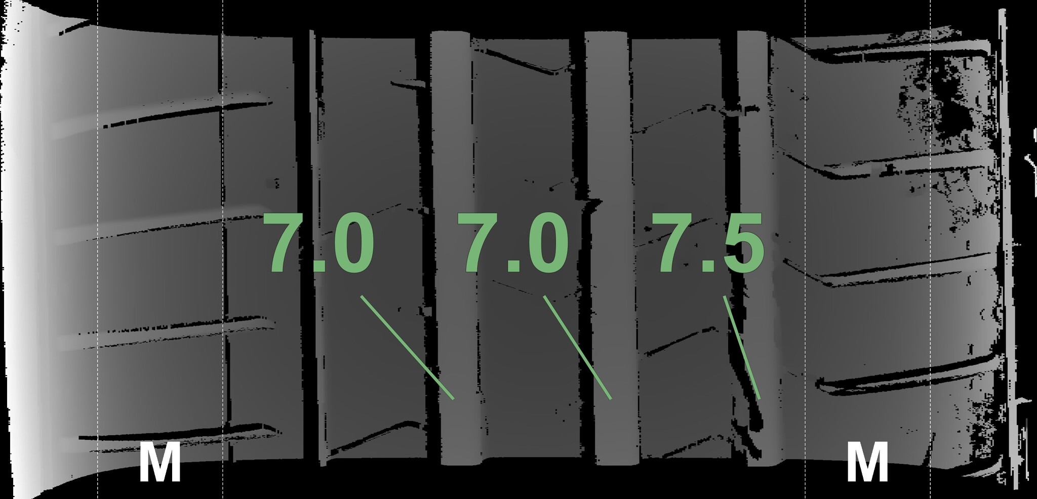 Condition | Profile depth | DOT | Front Left | New | 7.0 mm | 0125 |