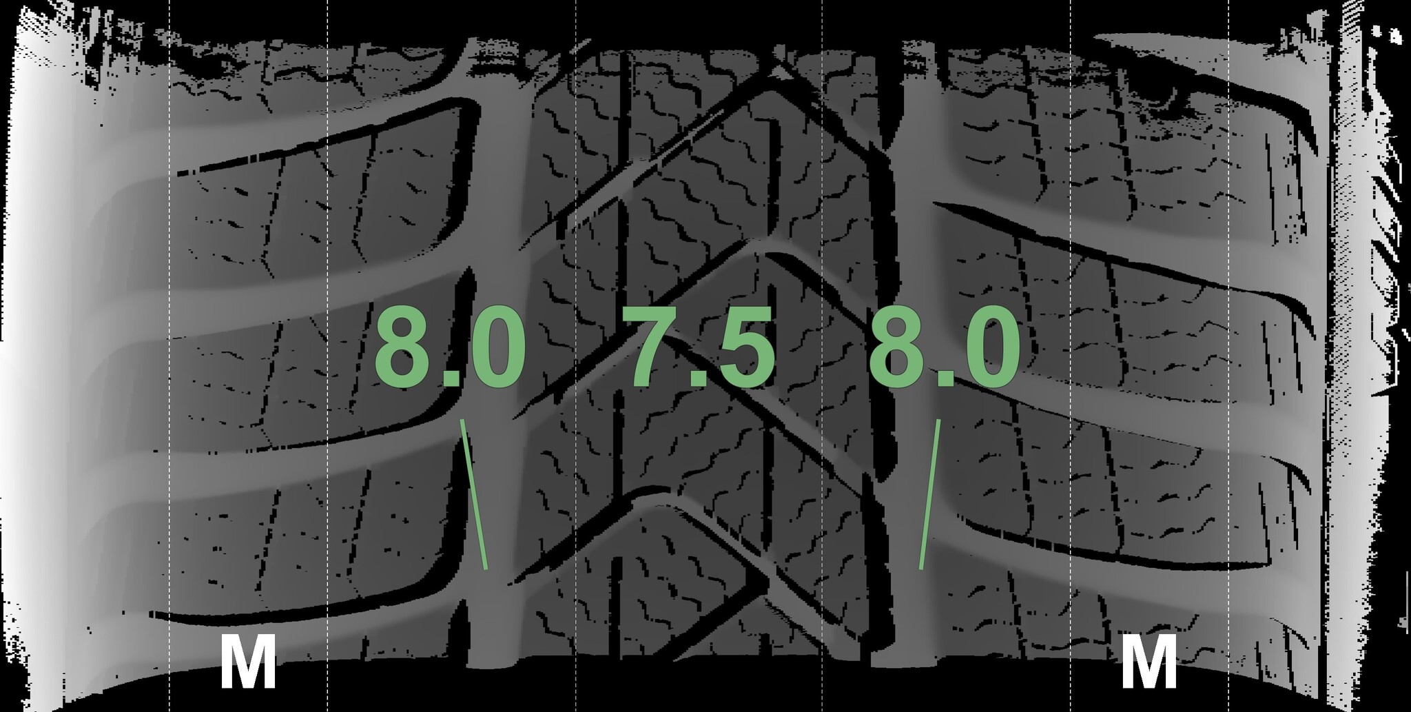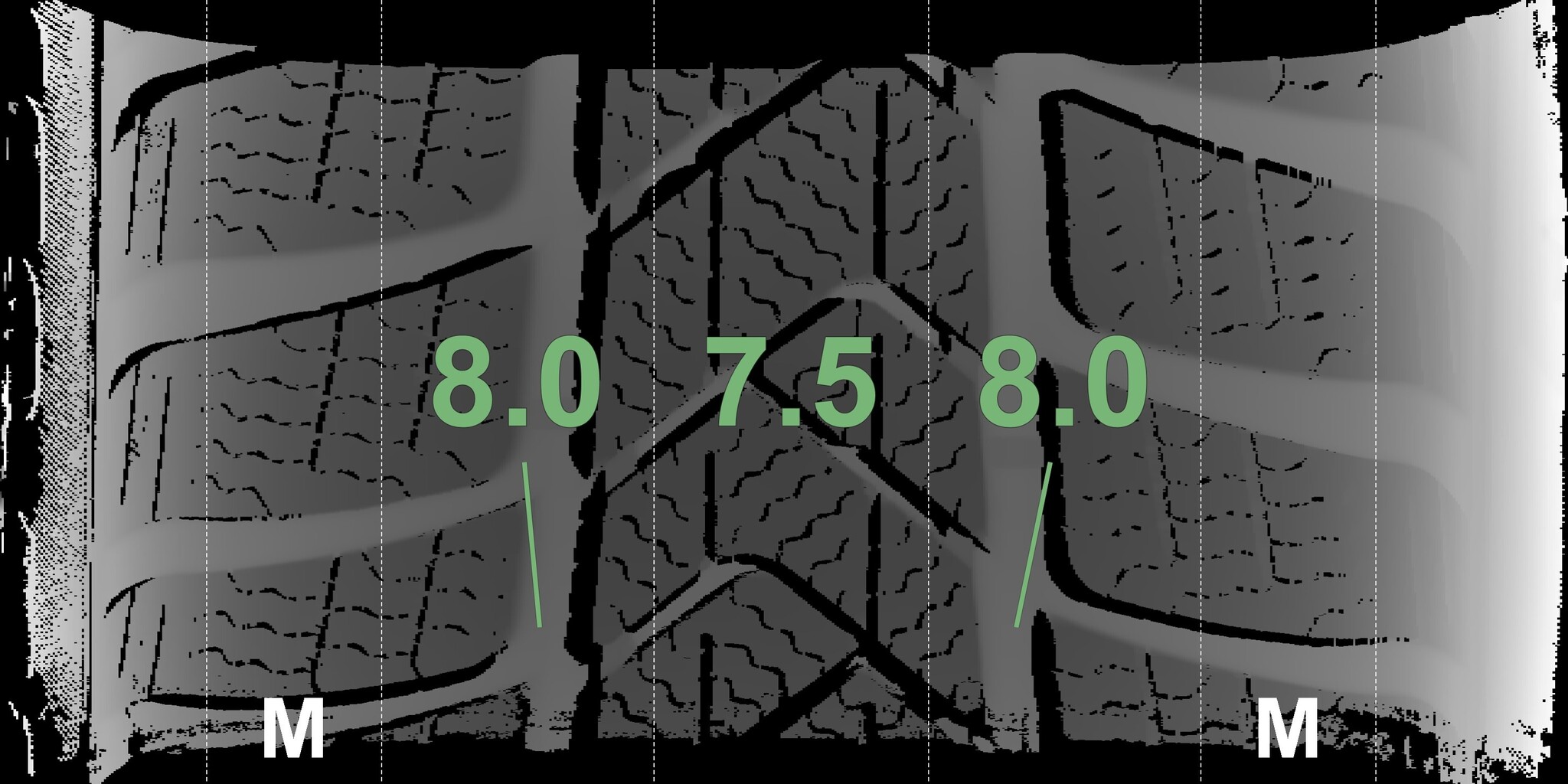 | Condition | Profile depth | DOT | Front Right | Used | 7.5 mm | 4121 |