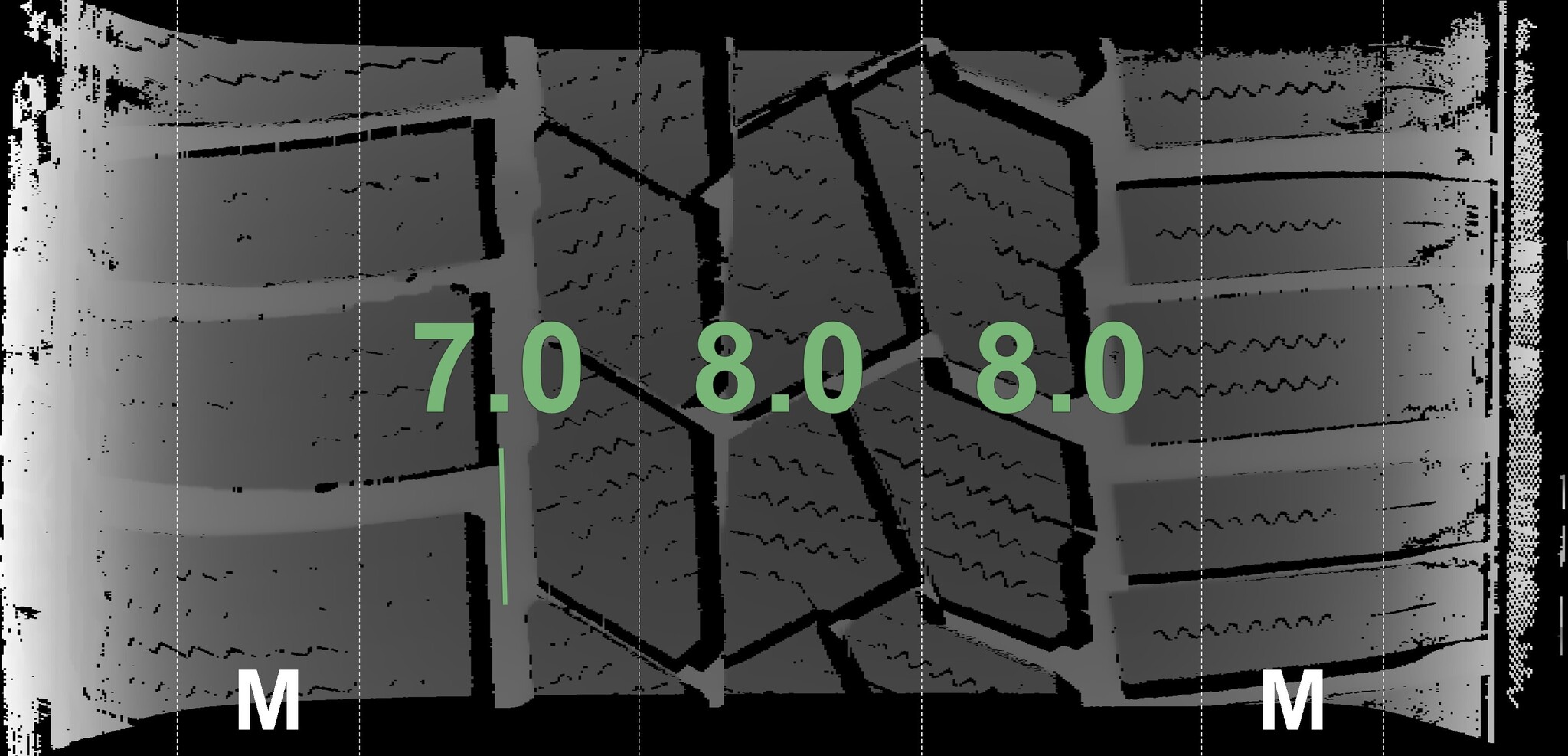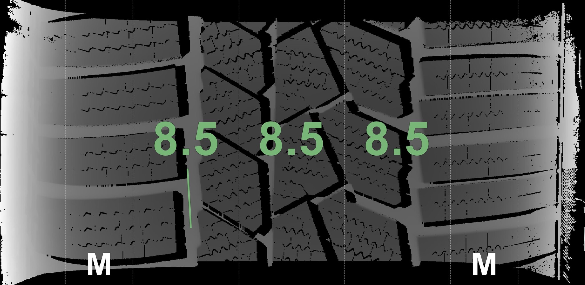 | Condition | Profile depth | DOT | Front Right | New | 8.5 mm | 2424 |