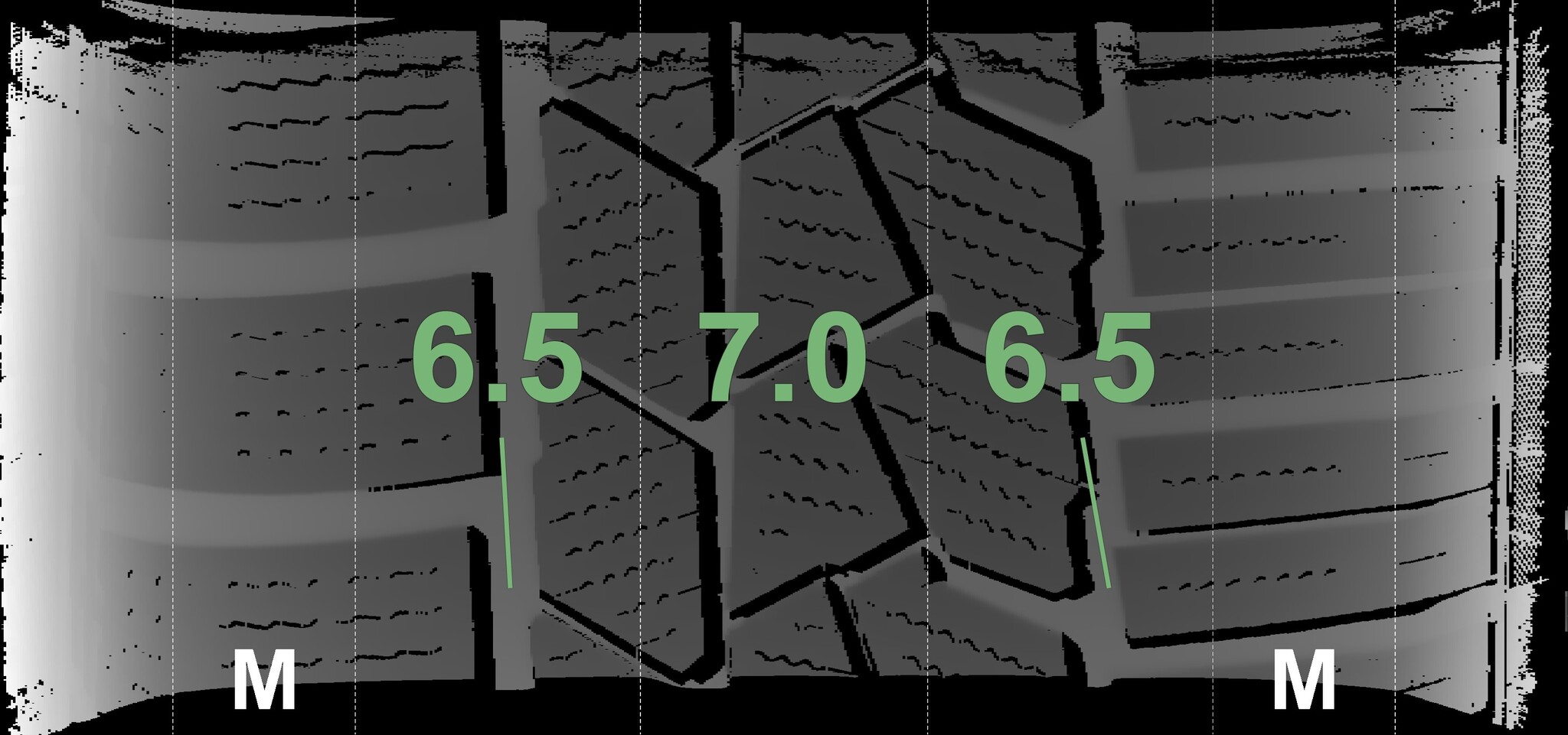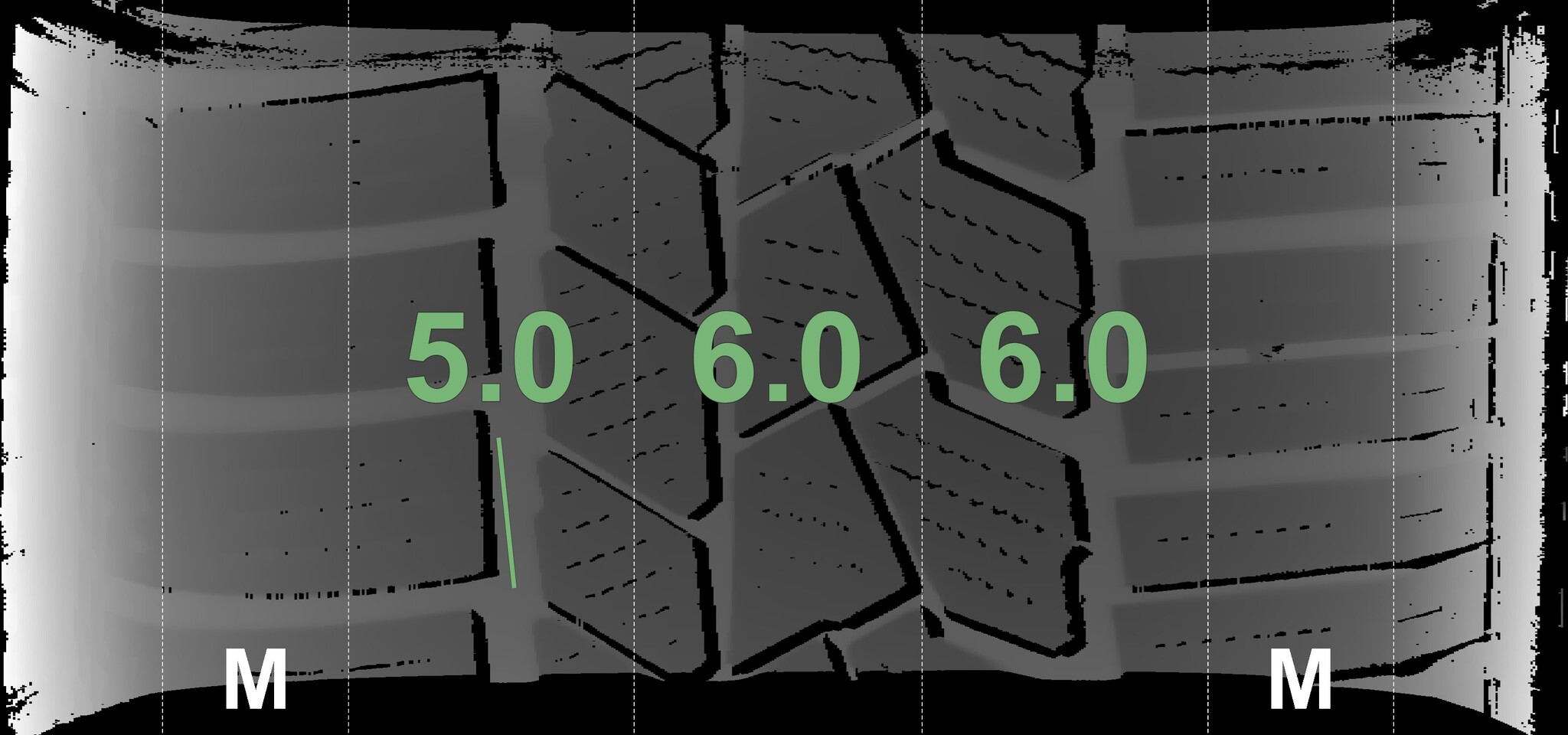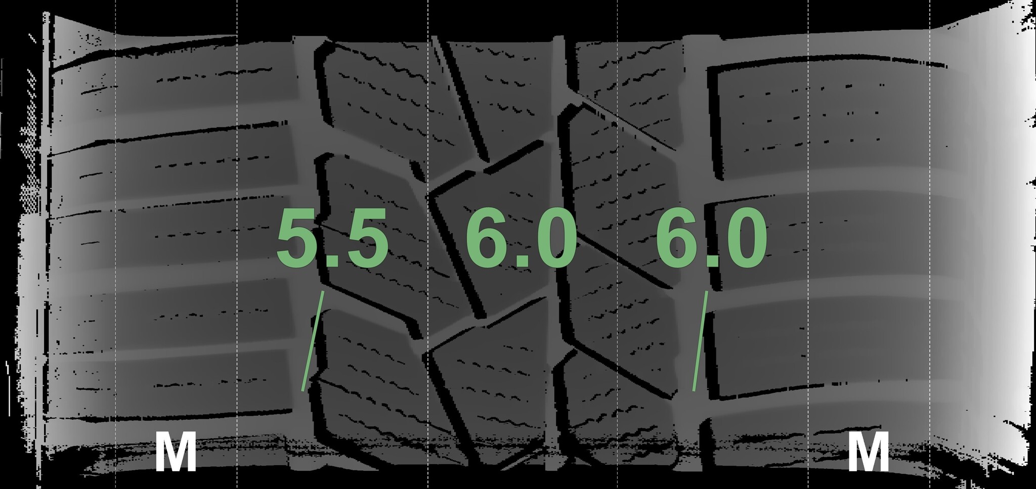 The measured tread depths and details of the rims are shown above.
