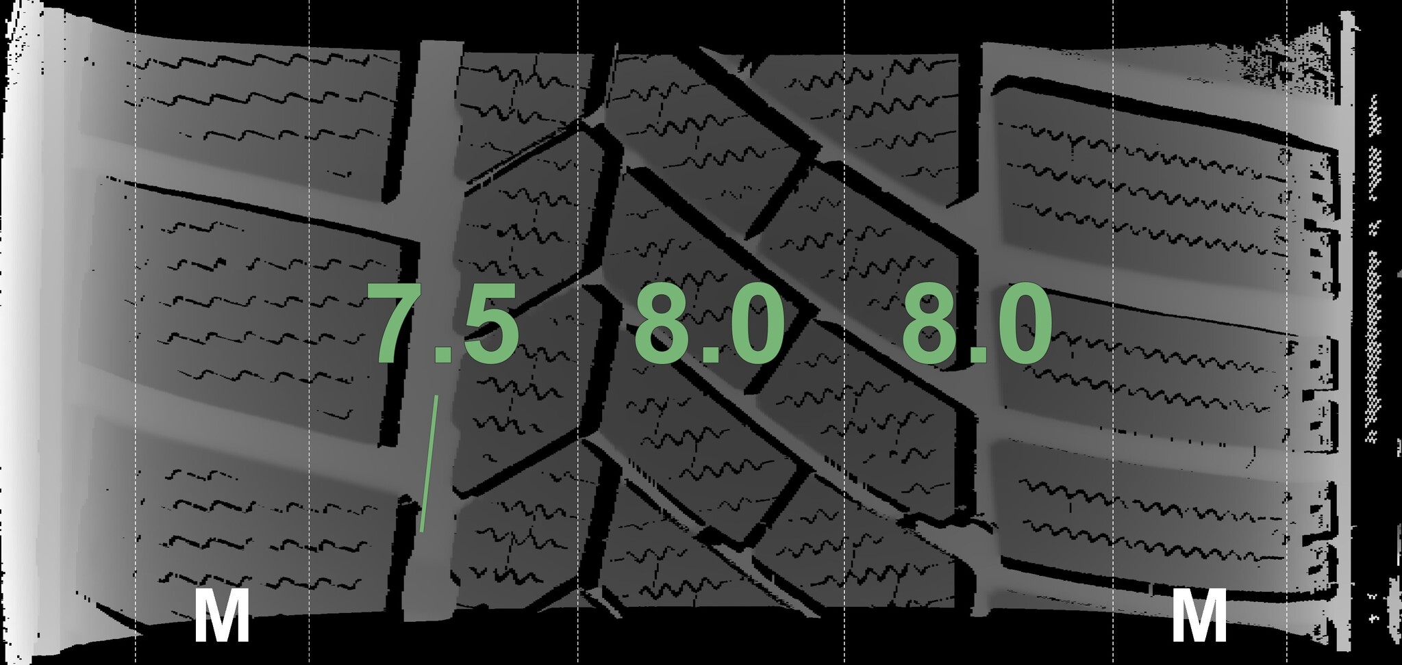 Condition | Profile depth | DOT | Front Left | Used | 7.5 mm | 2718 |