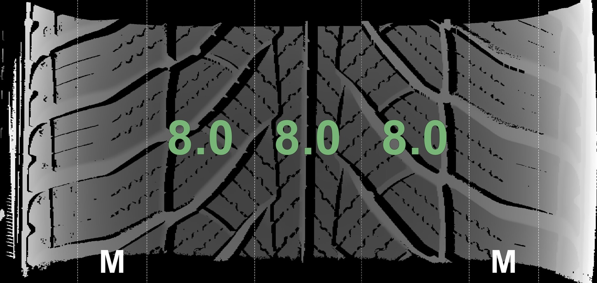 | Condition | Profile depth | DOT | Front Right | New | 7.8 mm | 3824 |
