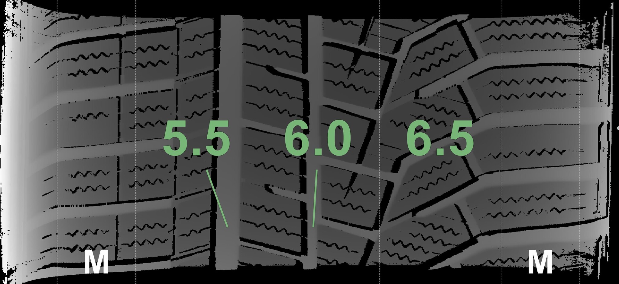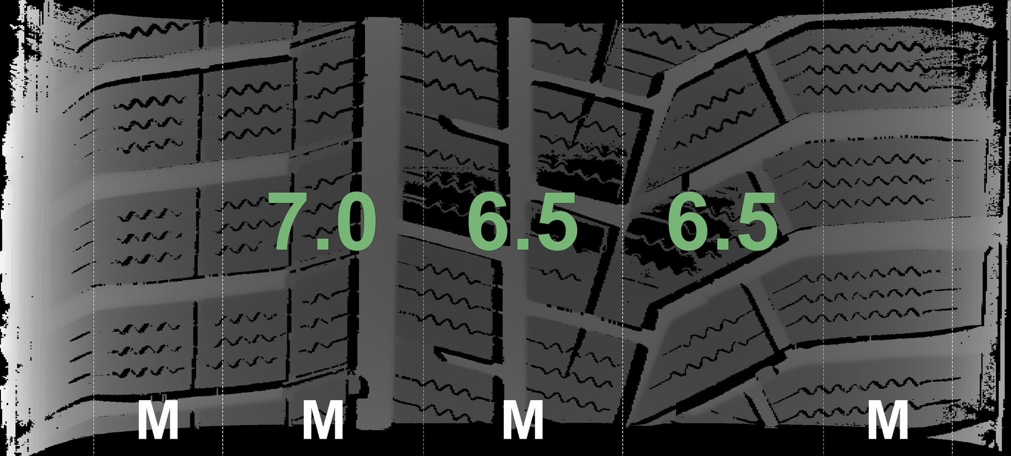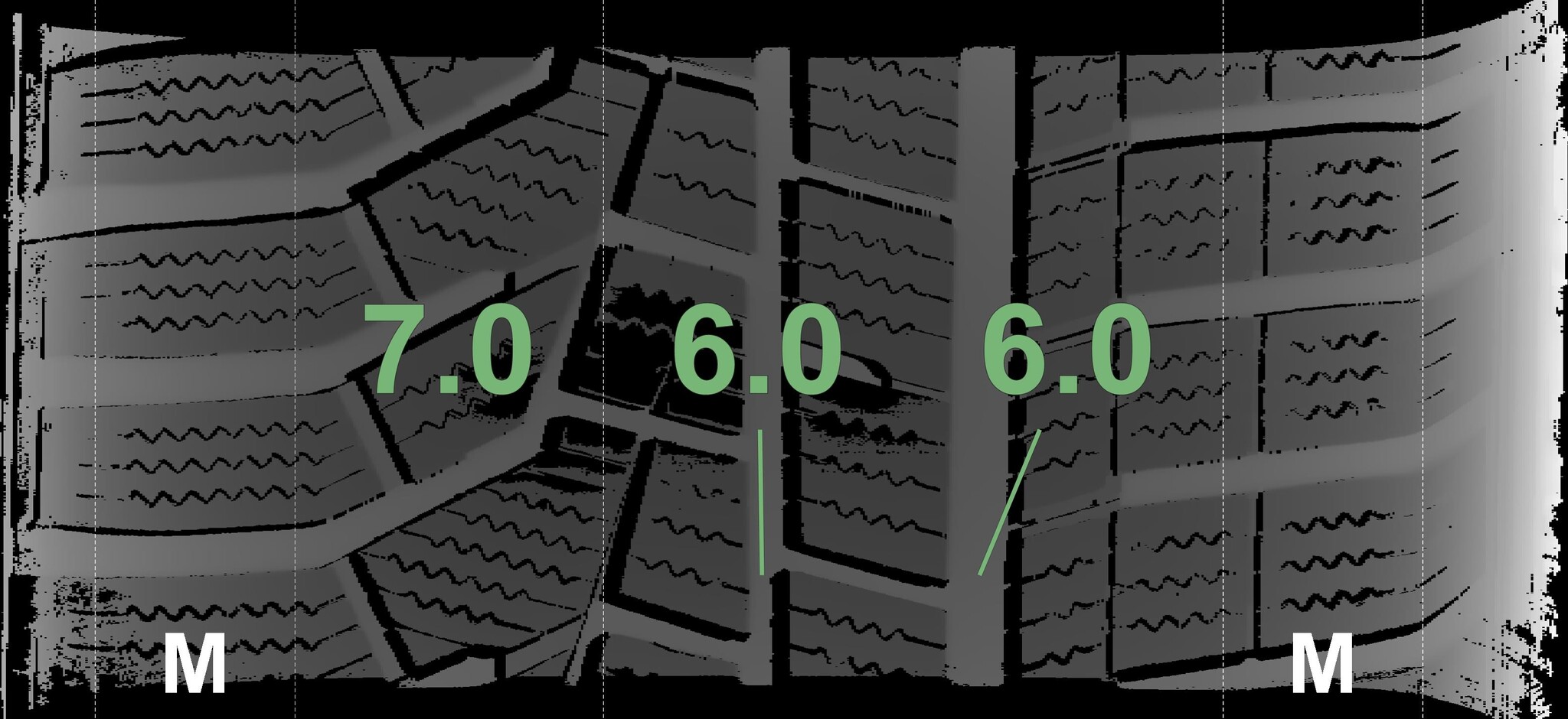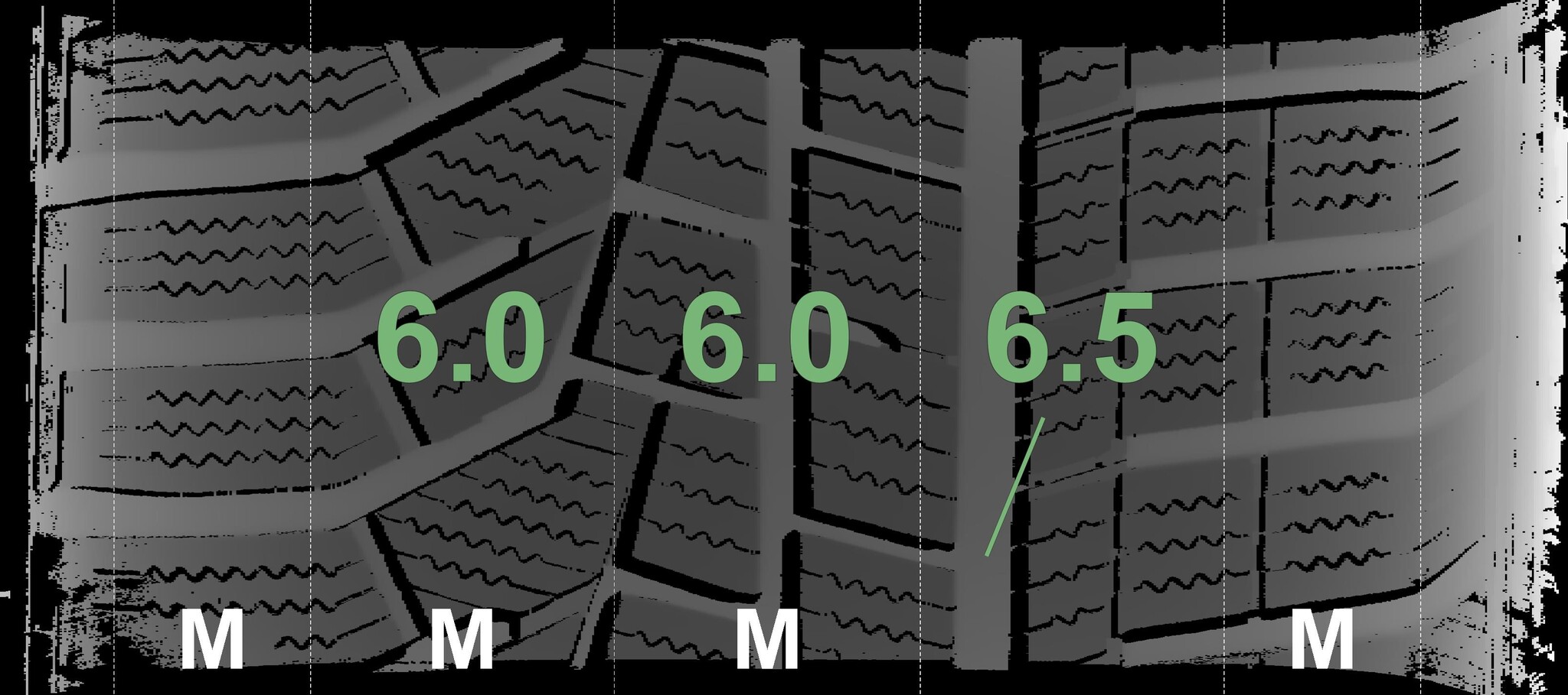 The measured tread depths and details of the rims are shown above.