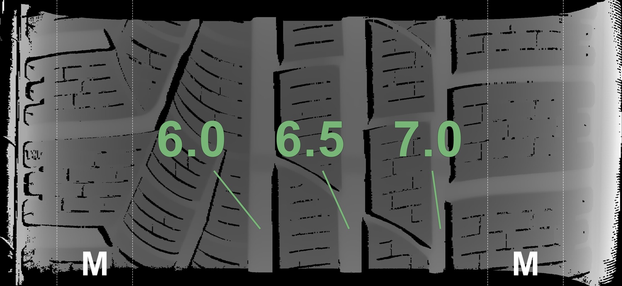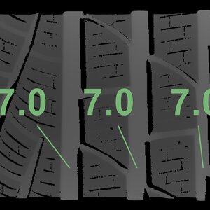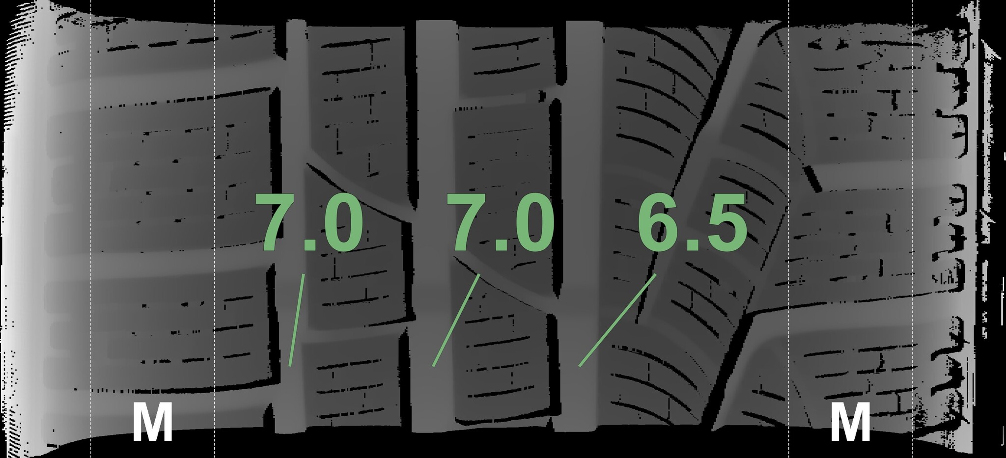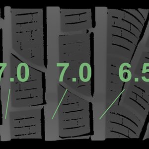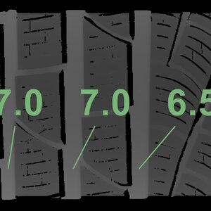 The measured tread depths and the details of the rims are shown above.