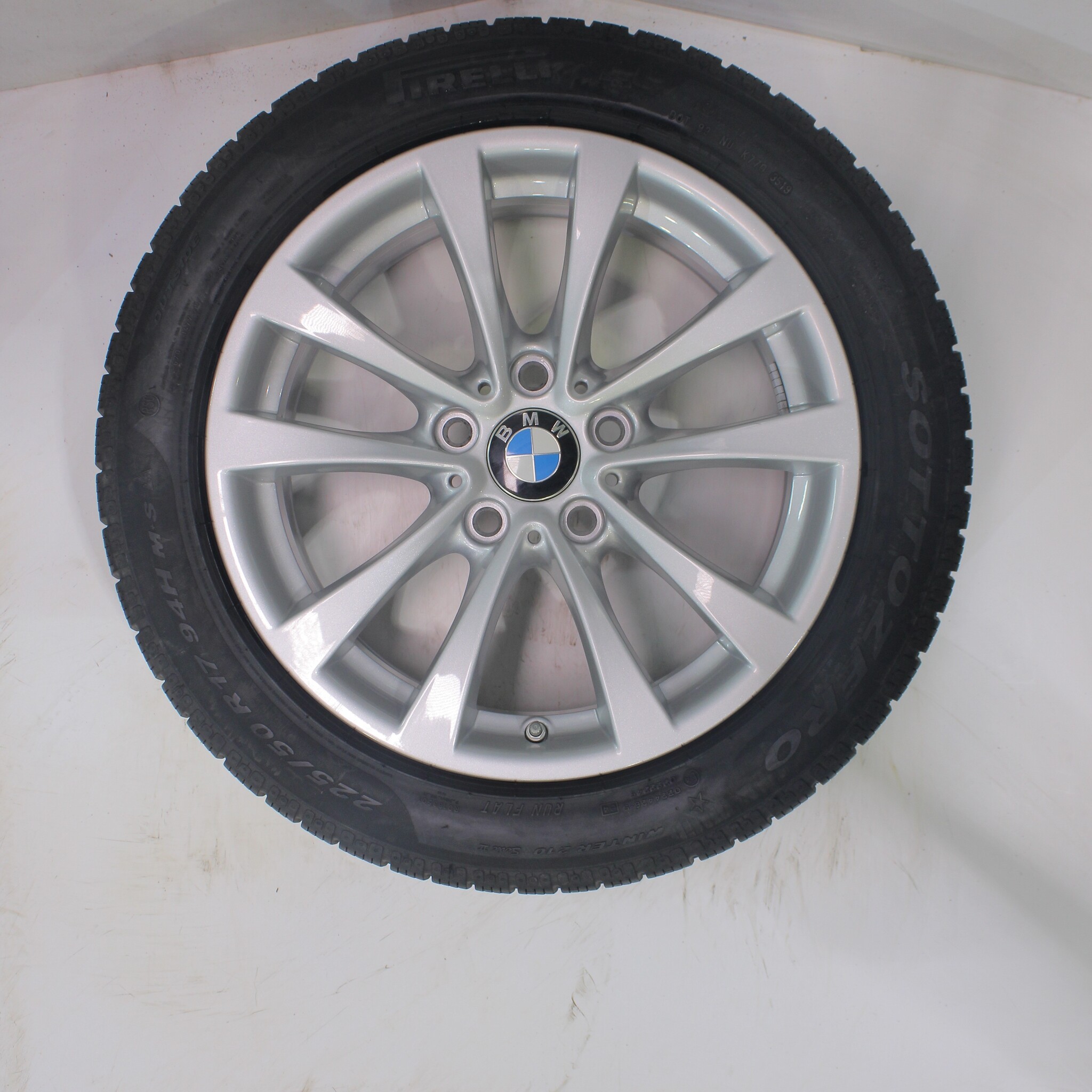 Original BMW wheelset, styling 395, 17-inch rims with Pirelli Sottozero Winter 210 Runflat Winter tires. These rims are original BMW brand rims and suitable for: BMW 3 4 series F30 F31 F32 F33 F36.