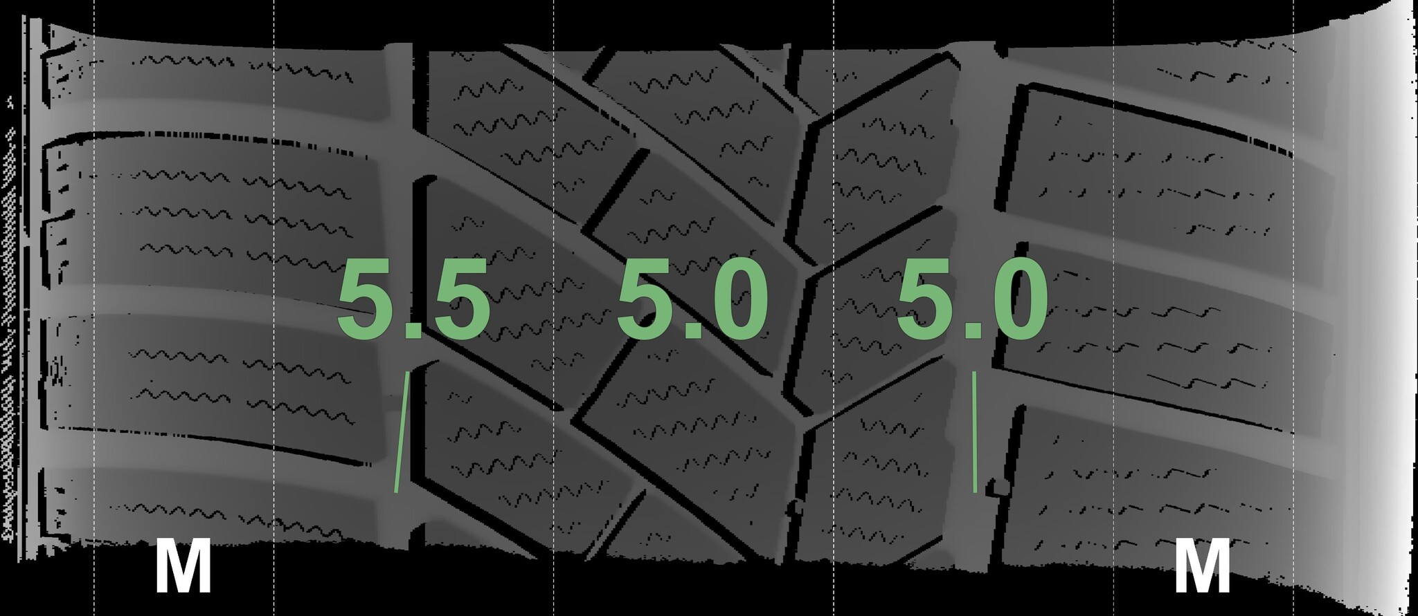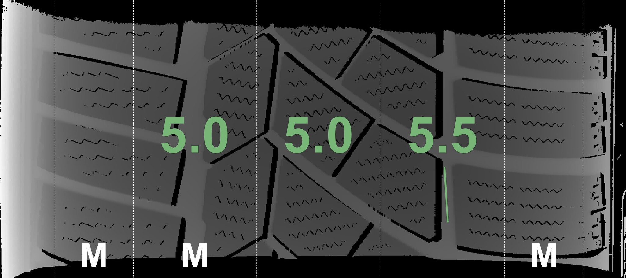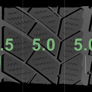 The measured tread depths and the details of the rims are shown above.