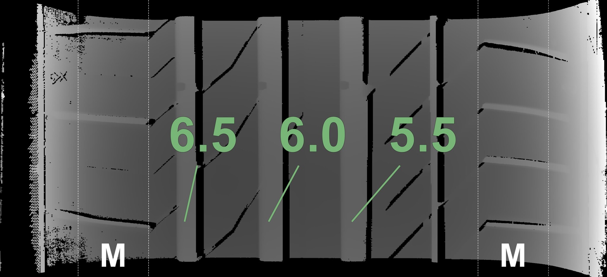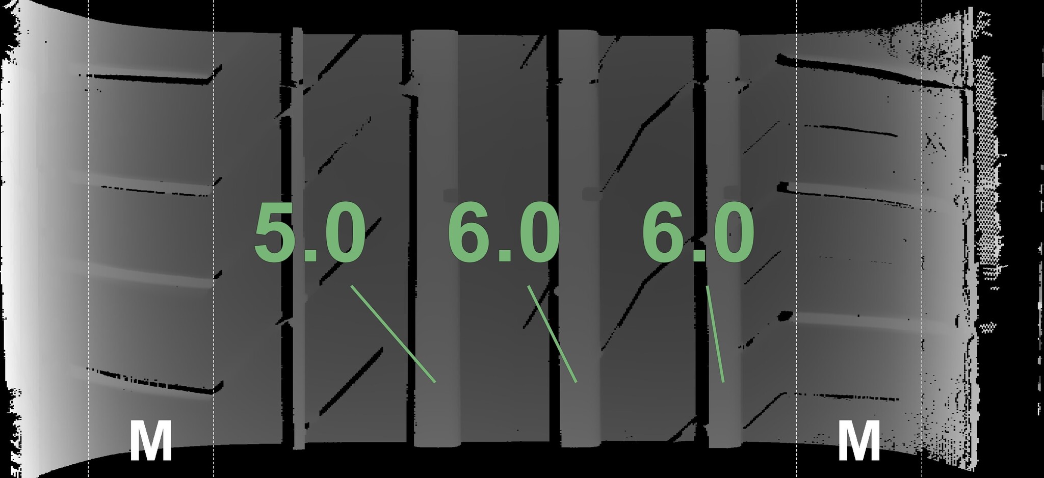 Condition | Profile depth | DOT | Front Left | Used | 5.0 mm | 0521 |