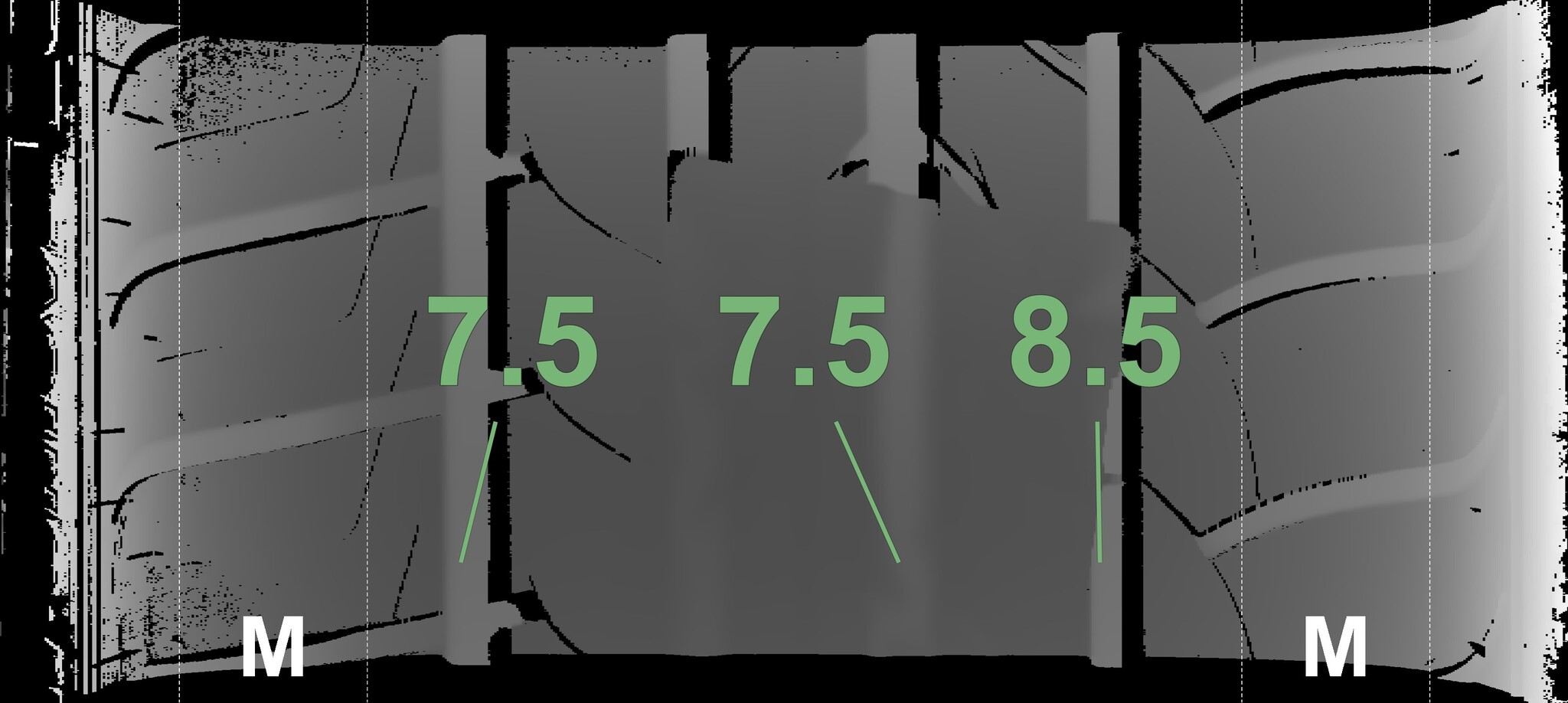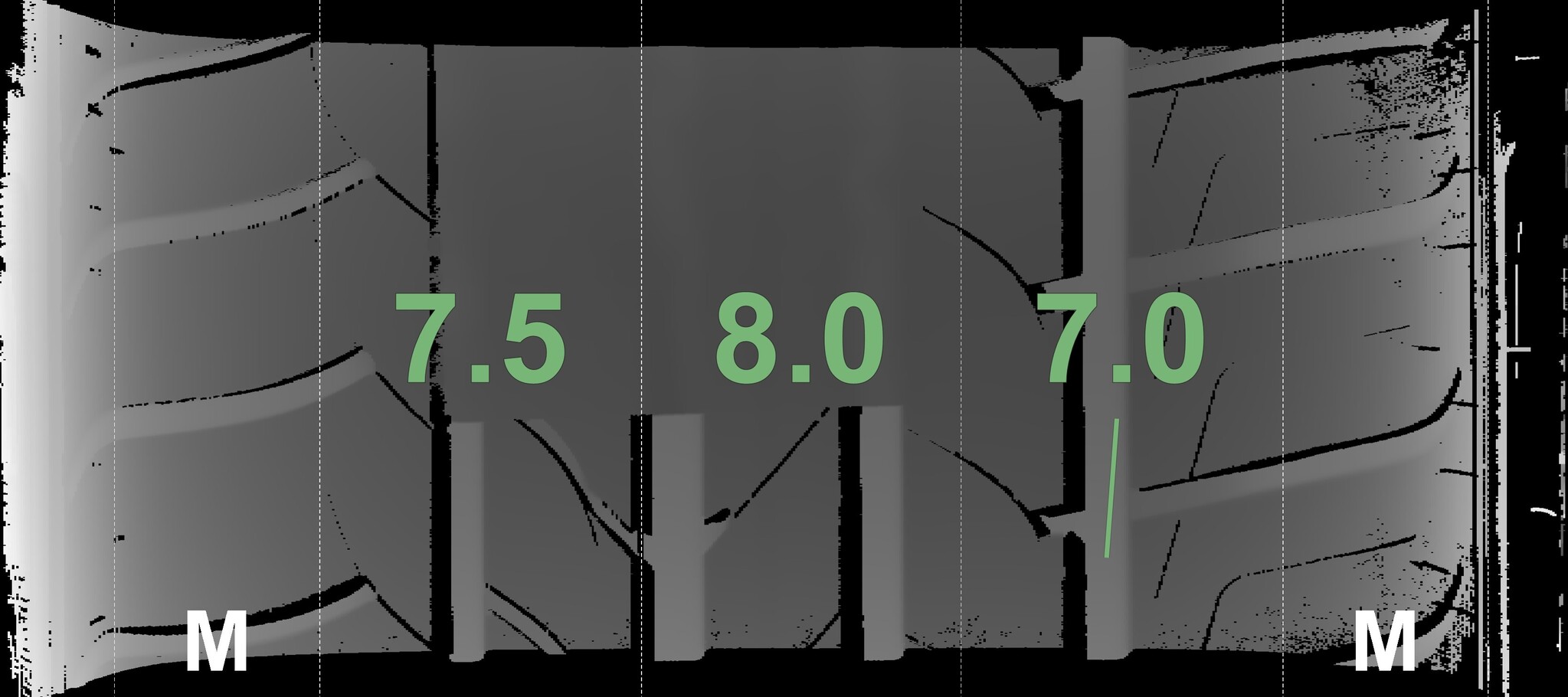 Condition | Profile depth | DOT | Front Right | Used | 7.5 mm | 0521 |
