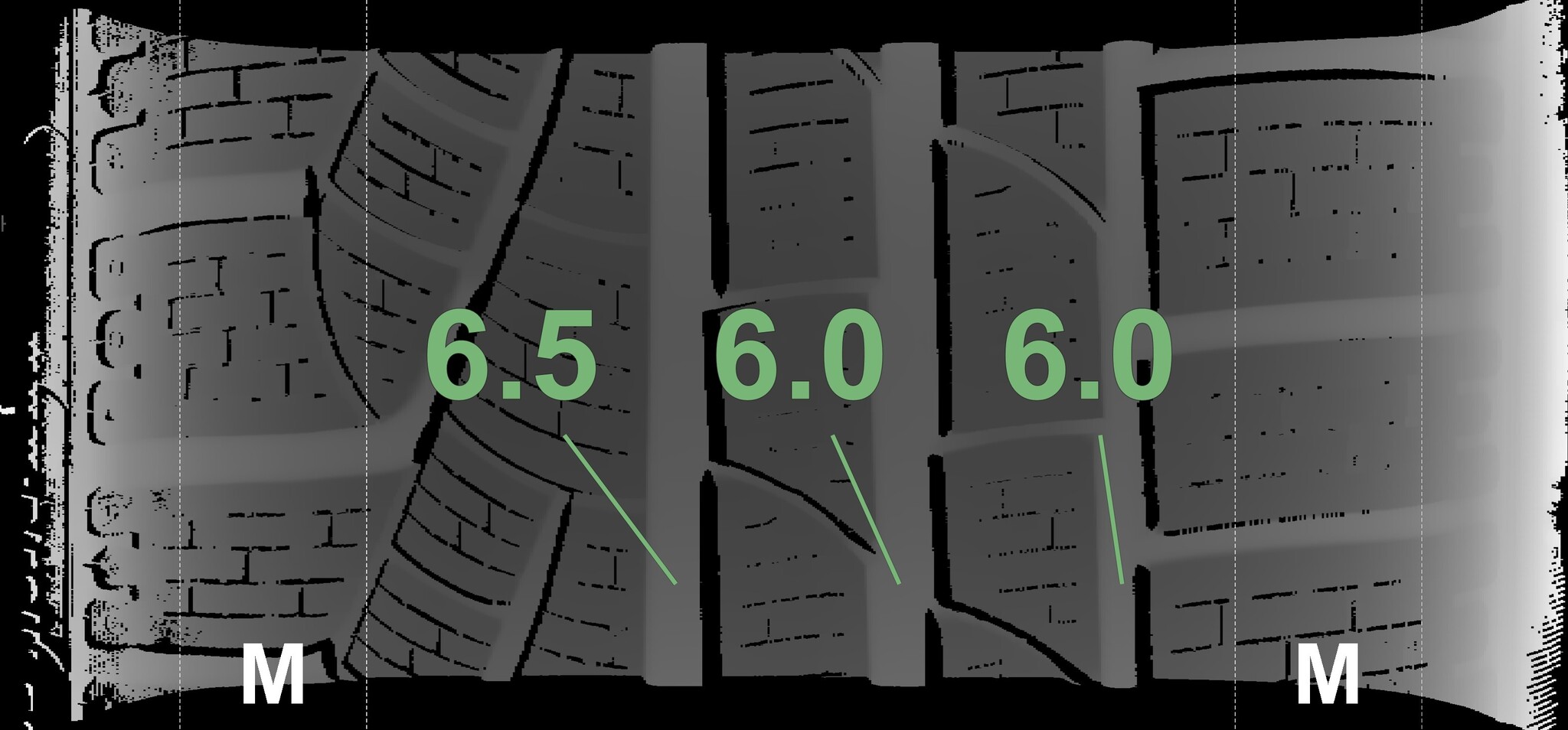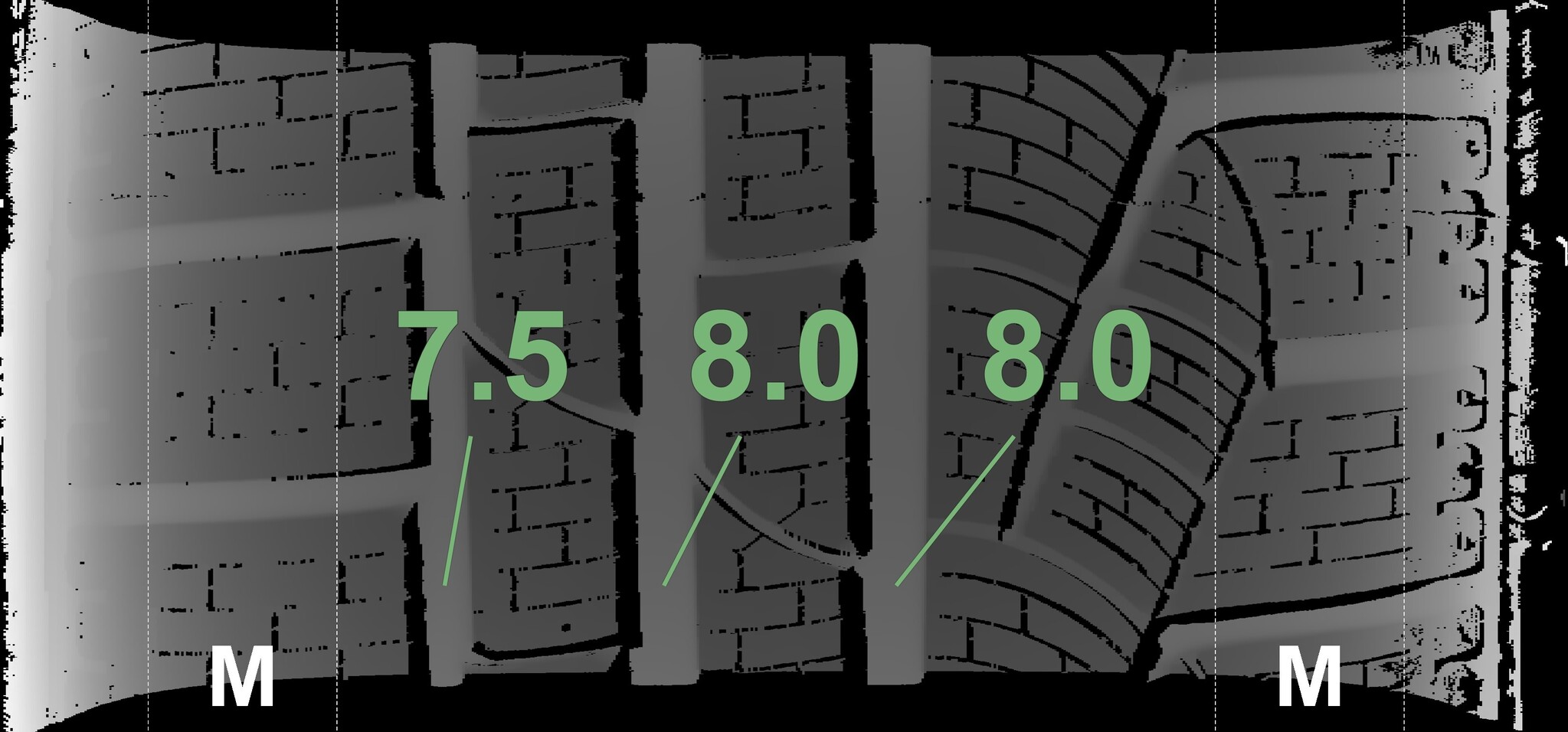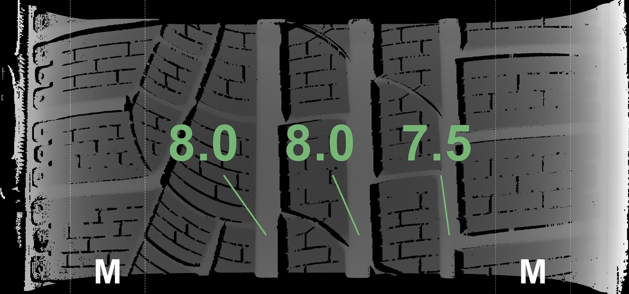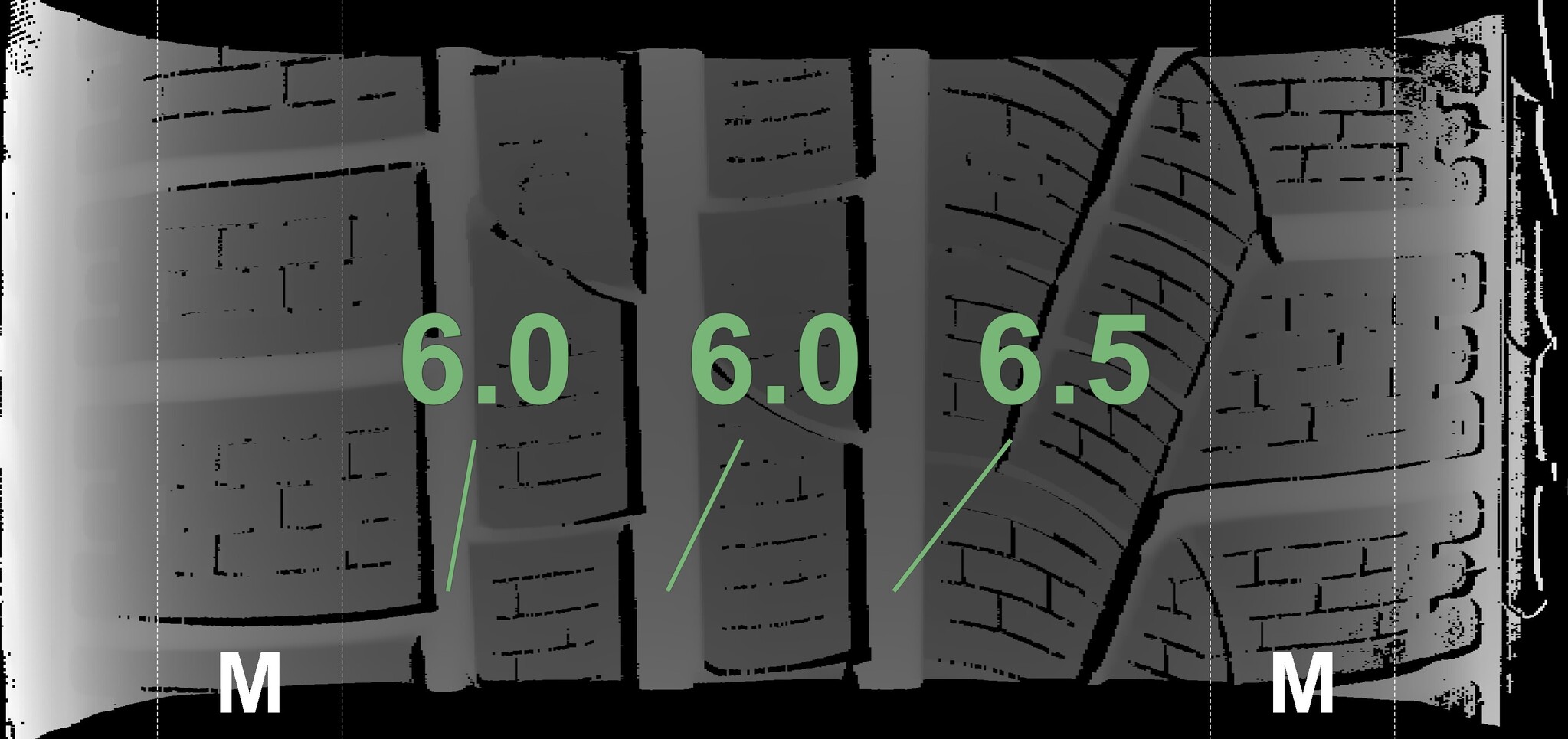 The measured tread depths and details of the rims are shown above.