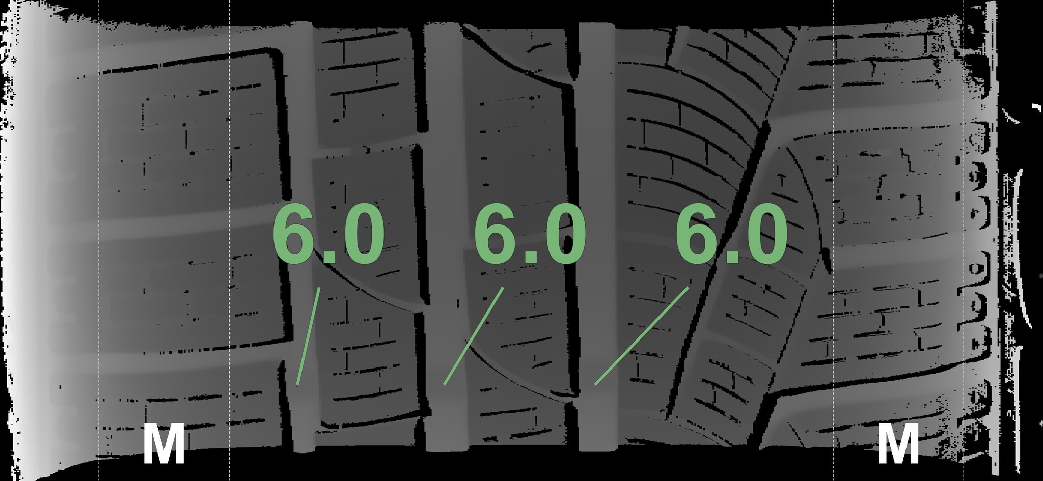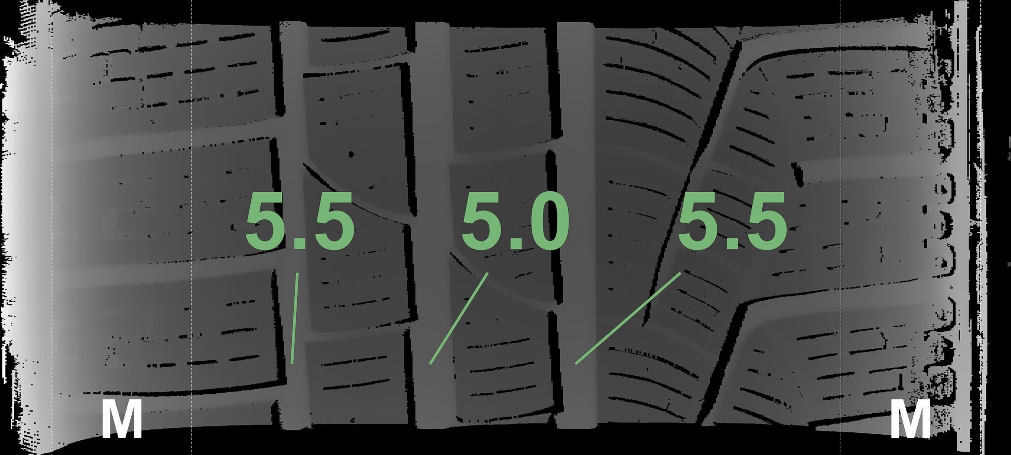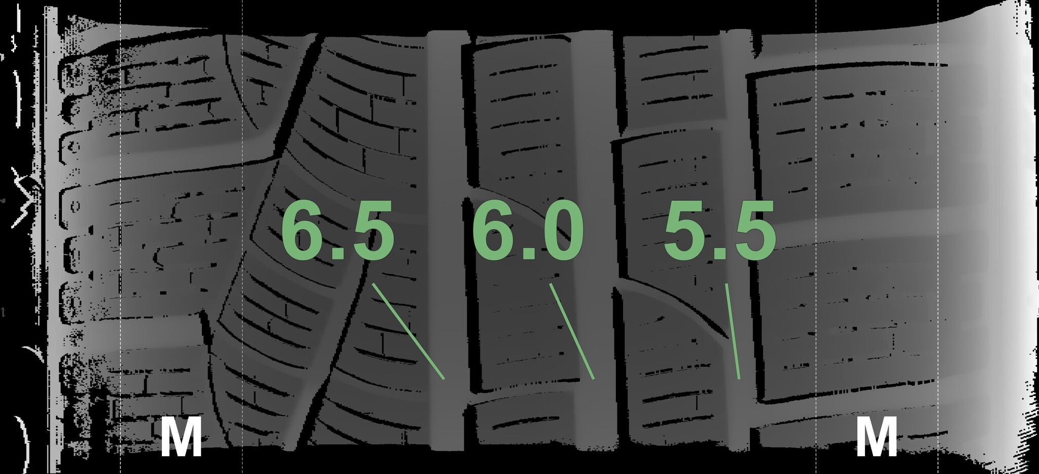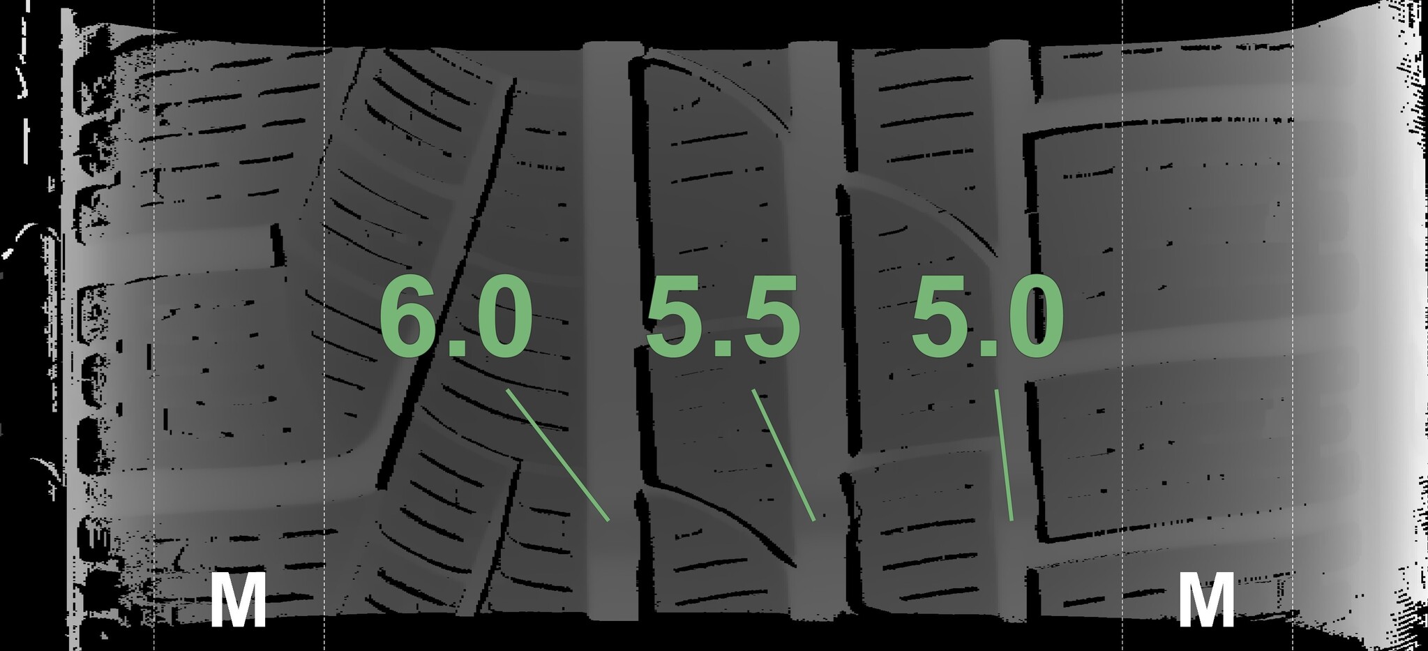 The measured tread depths and details of the rims are shown above.