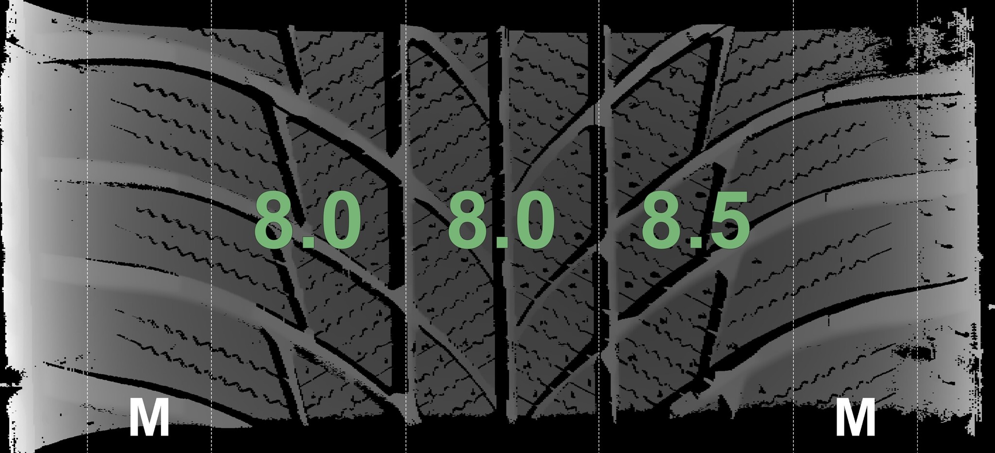 Condition | Profile depth | DOT | Rear Right | New | 8.0 mm | 2324 |