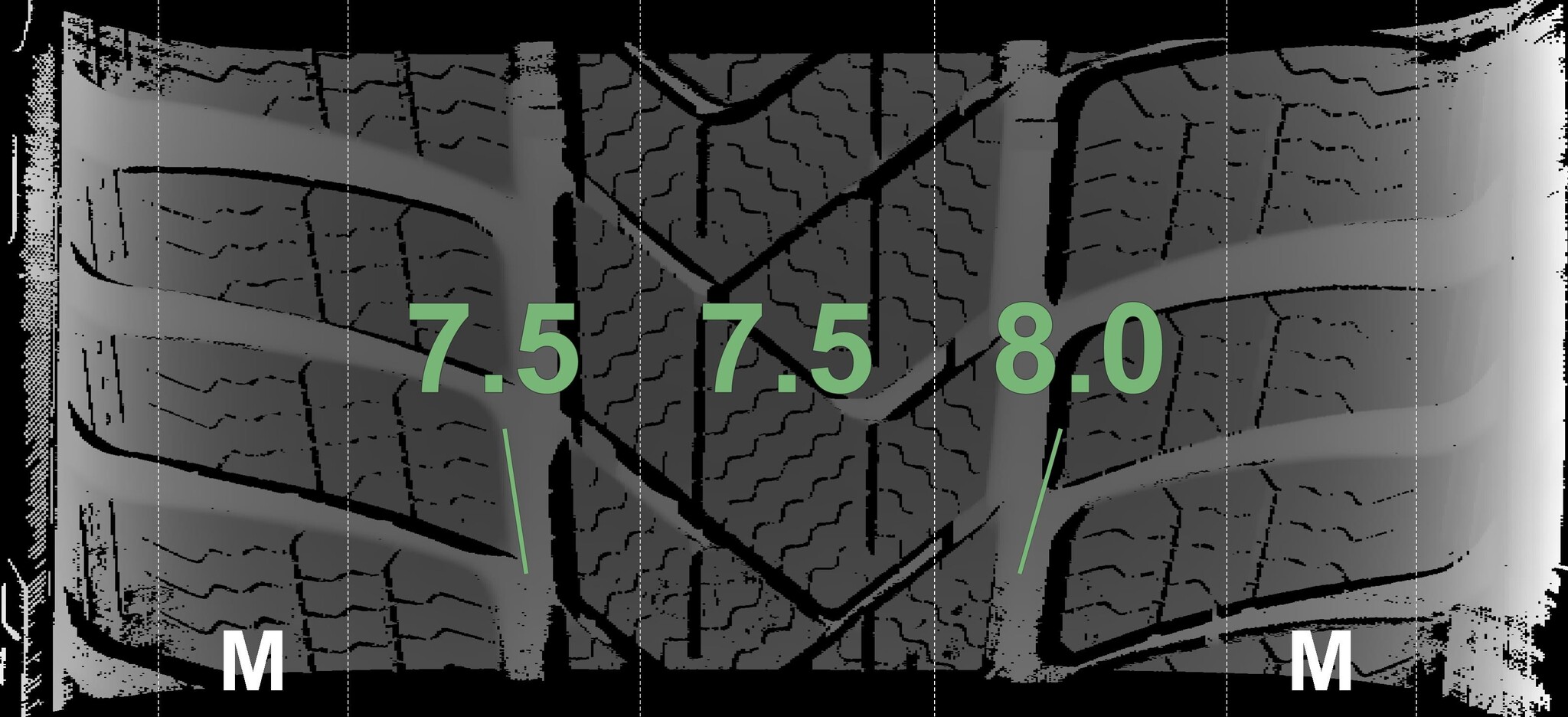 | Condition | Profile depth | DOT | Rear Right | New | 7.5 mm | 3924 |