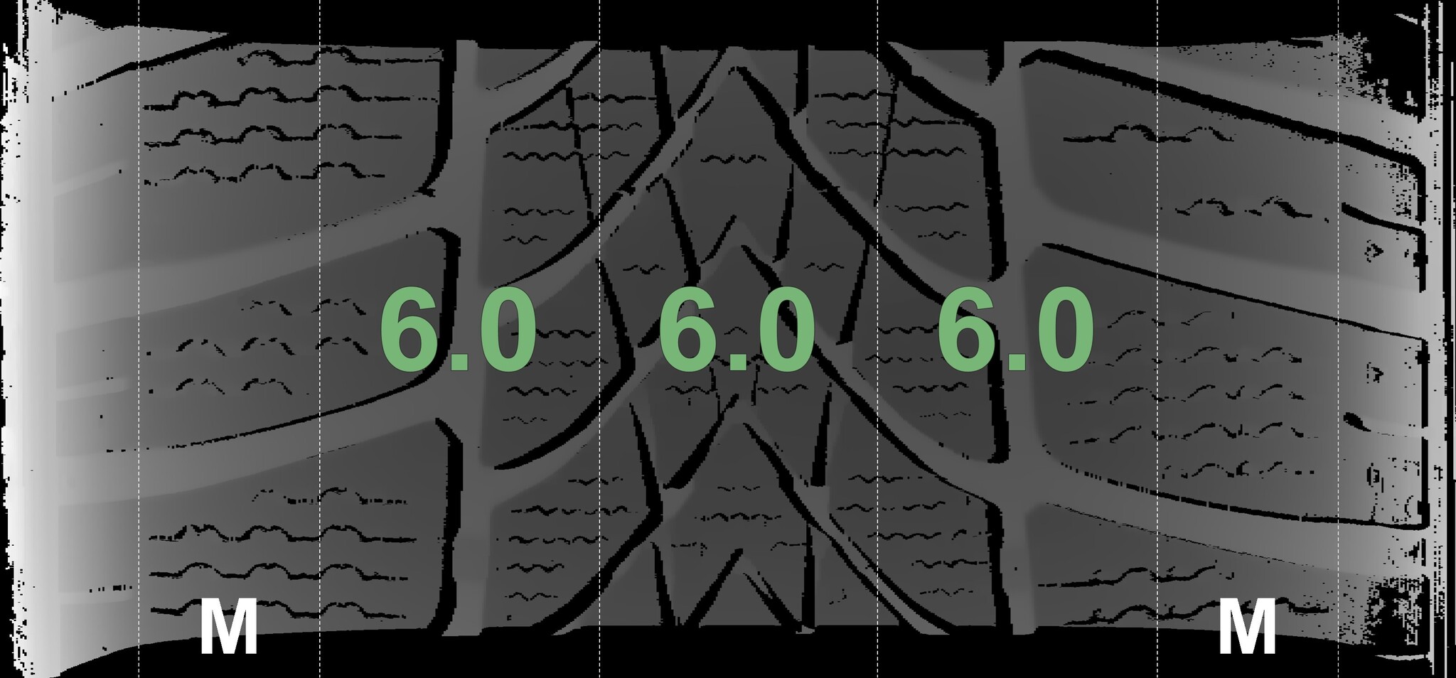 | Condition | Profile depth | DOT | Front Left | Used | 6.0 mm | 2418 |