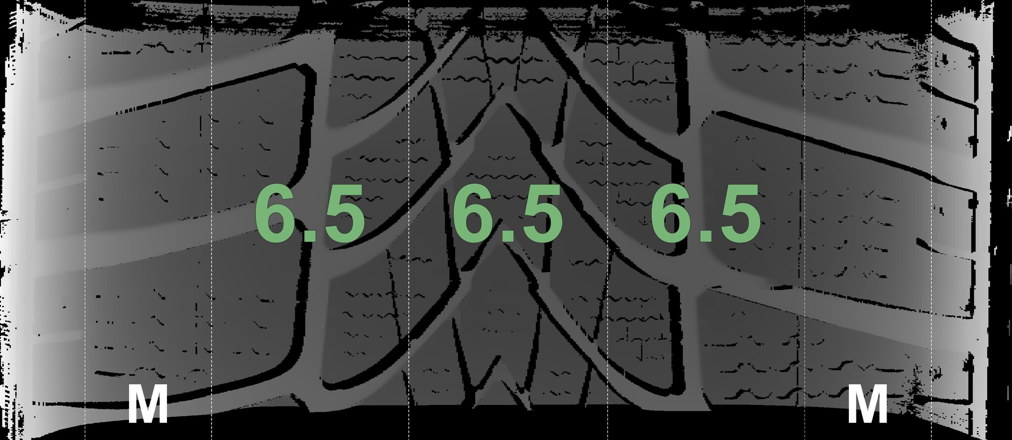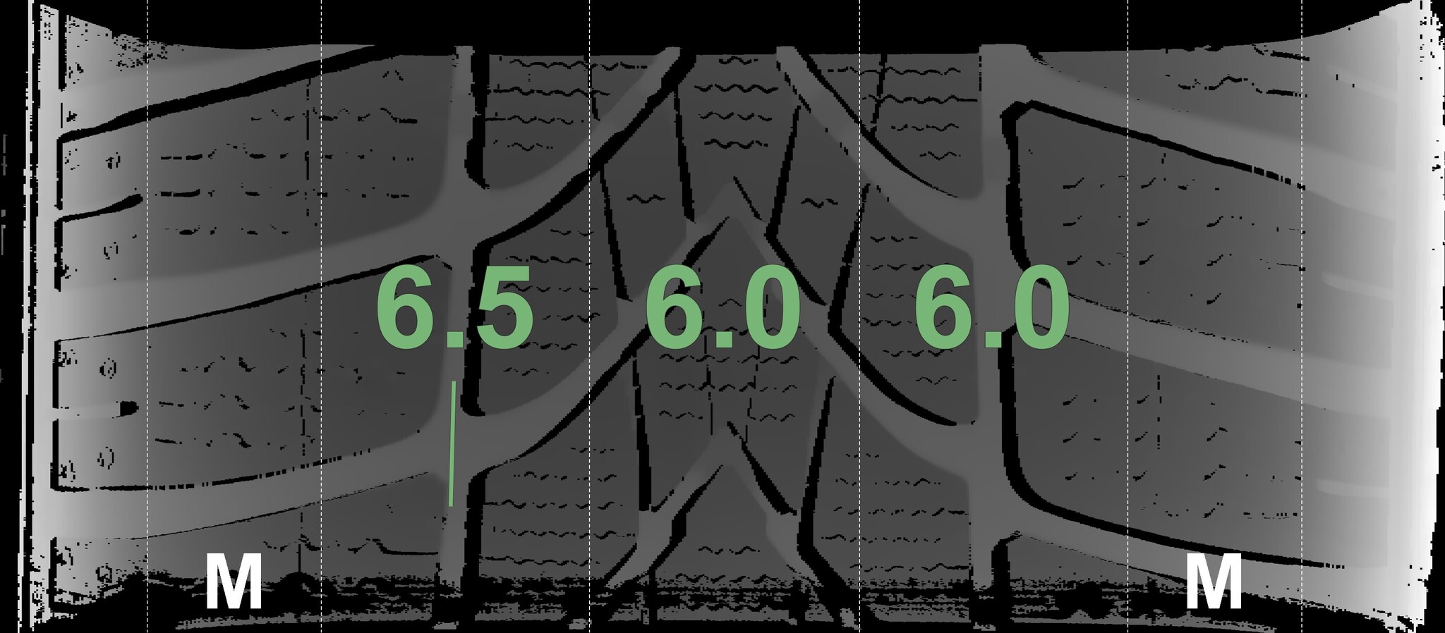 | Condition | Profile depth | DOT | Front Left | Used | 6.5 mm | 3118 |