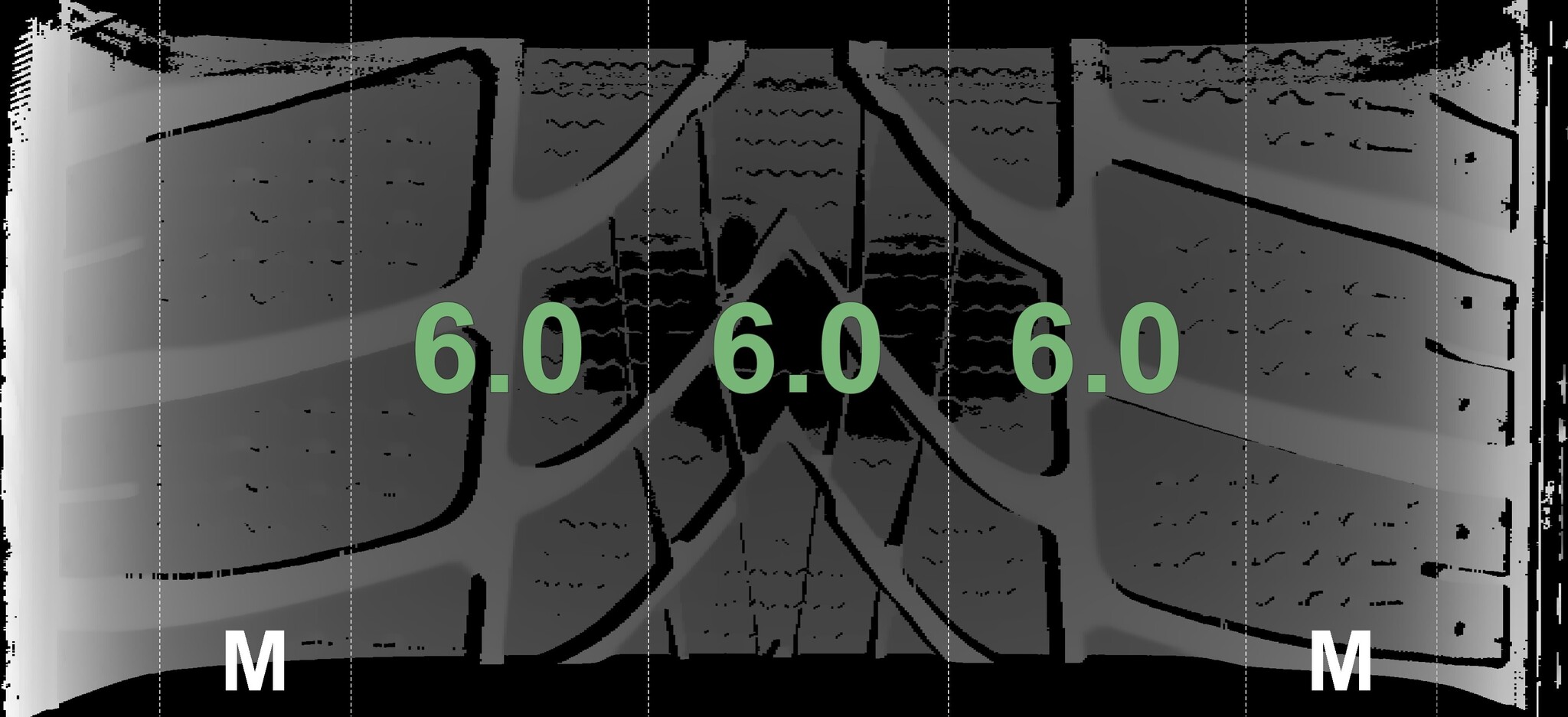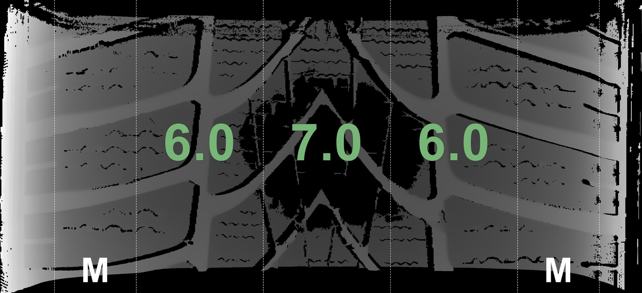 | Condition | Profile depth | DOT | Front Left | Used | 6.0 mm | 2418 |