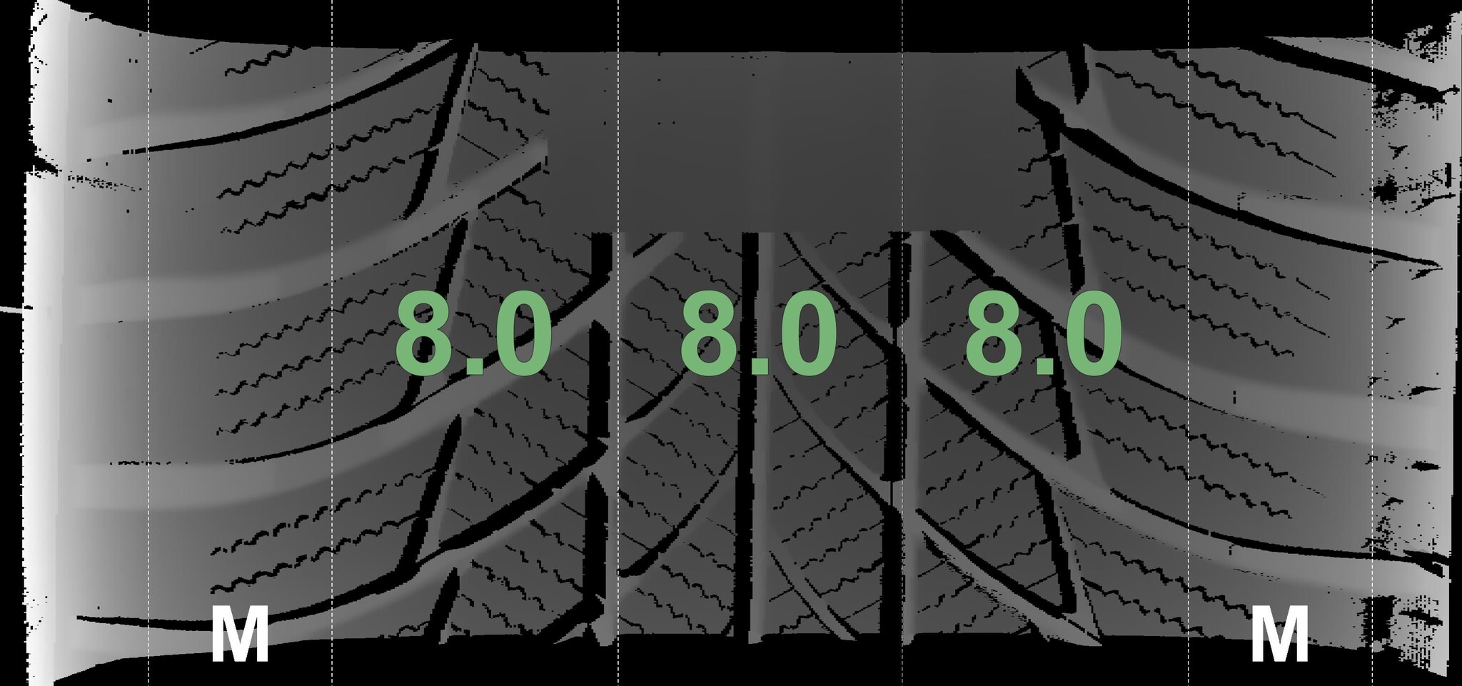 | Condition | Profile depth | DOT | Front Left | Used | 8.0 mm | 3618 |