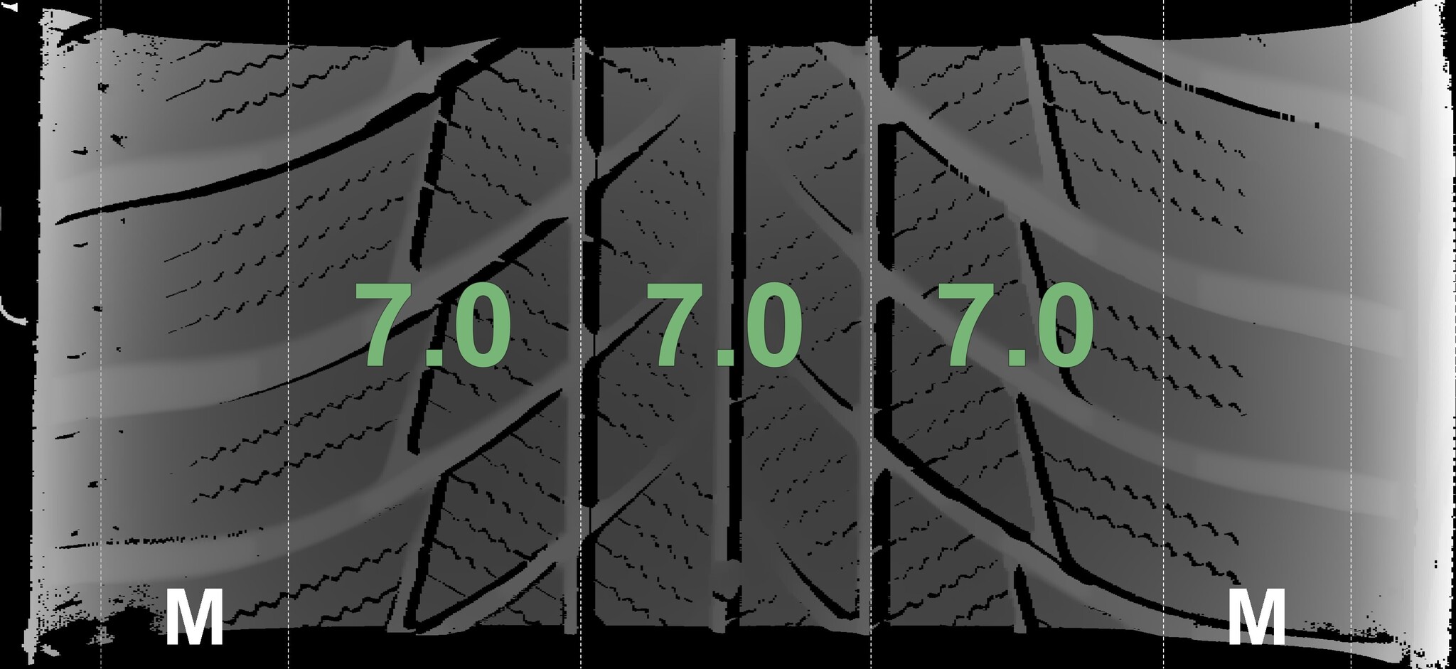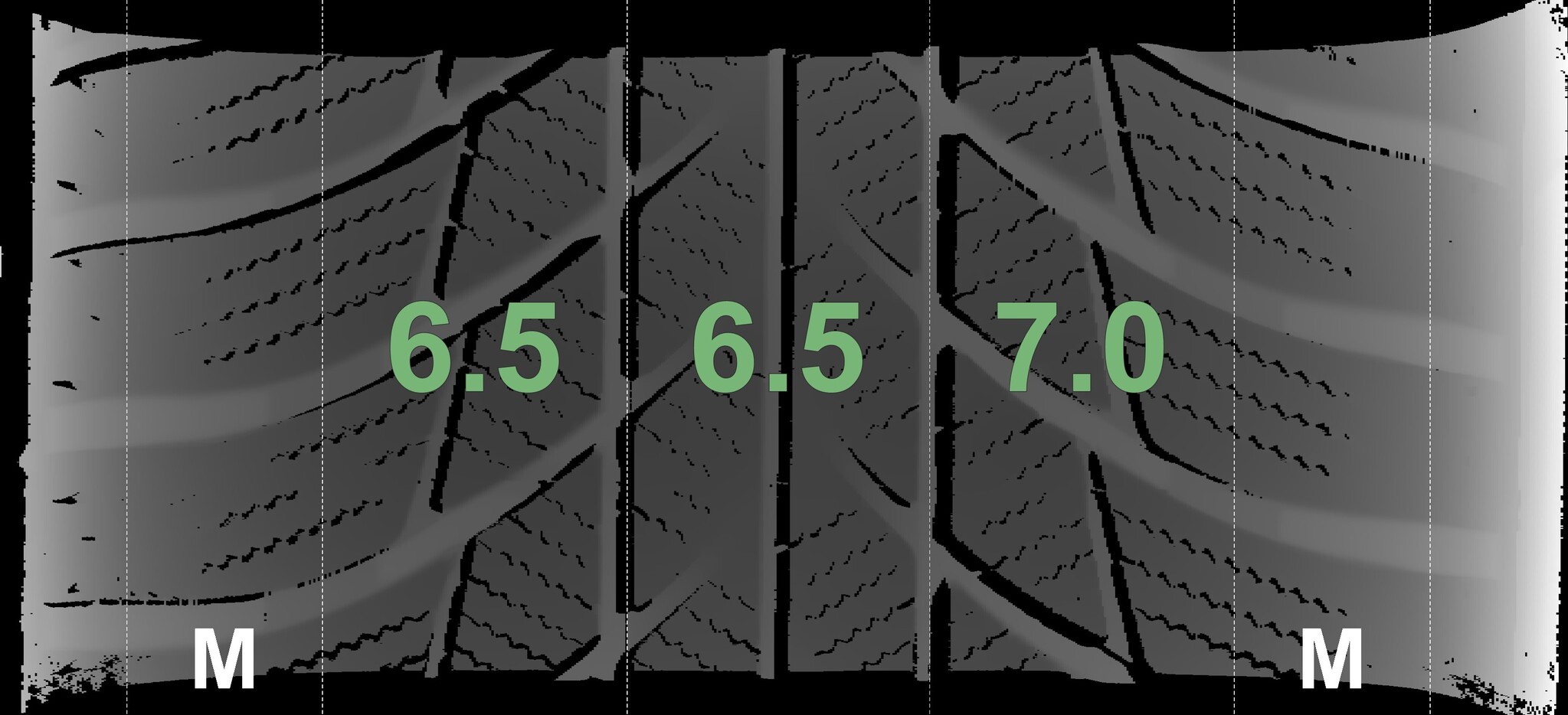 | Condition | Profile depth | DOT | Front Right | Used | 6.7 mm | 4022 |