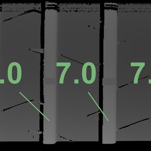 The measured tread depths and the details of the rims are shown above.