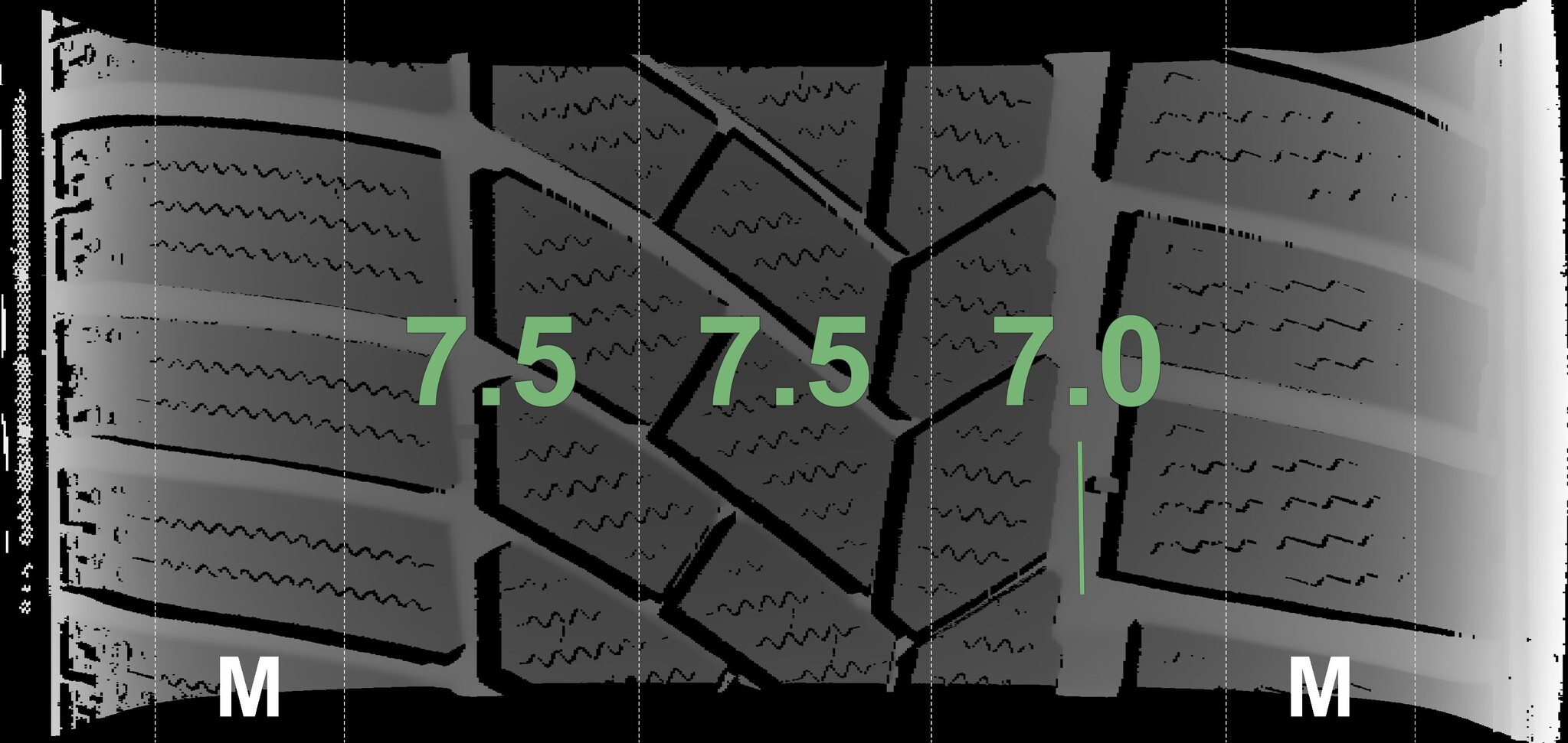 | Condition | Profile depth | DOT | Front Left | Used | 6.5 mm | 3819 |