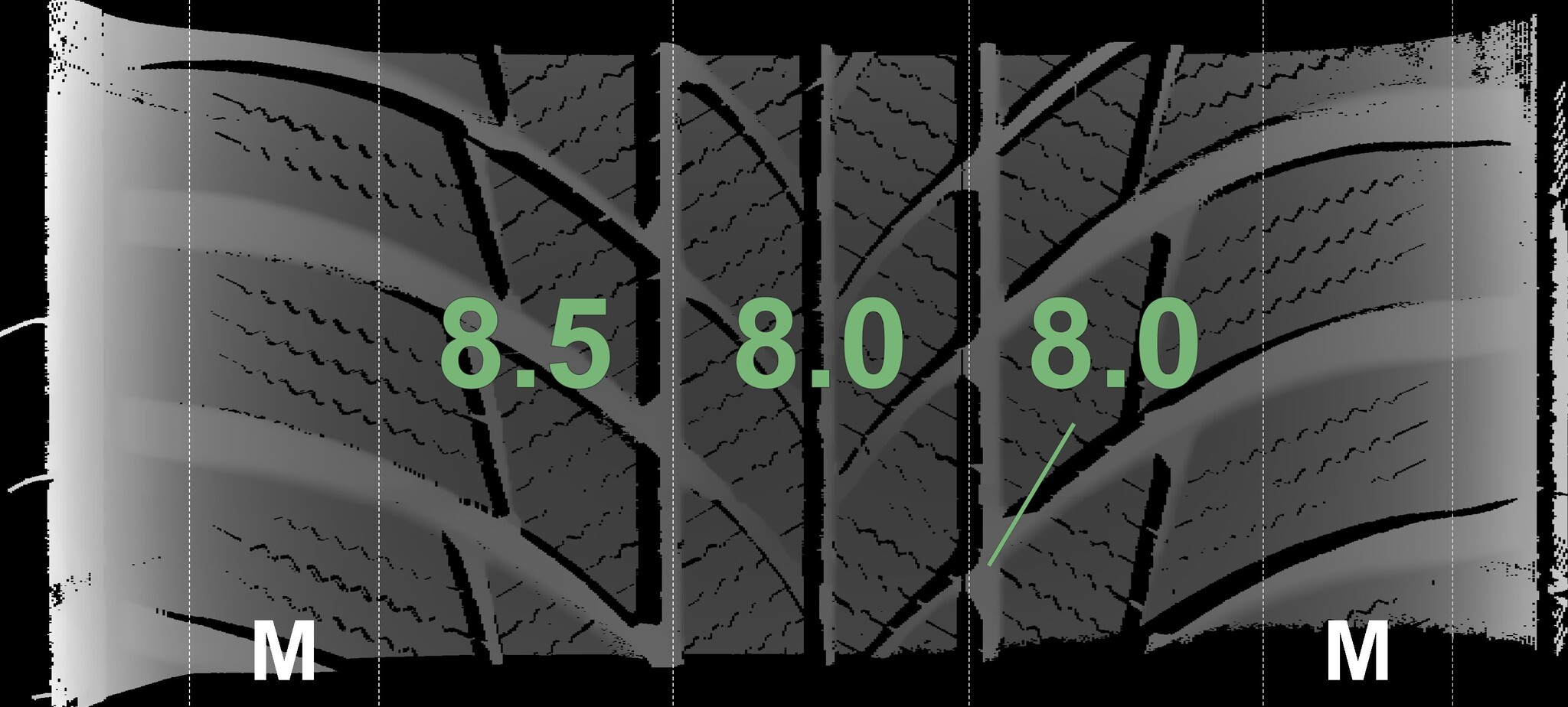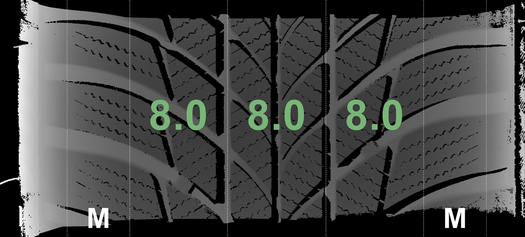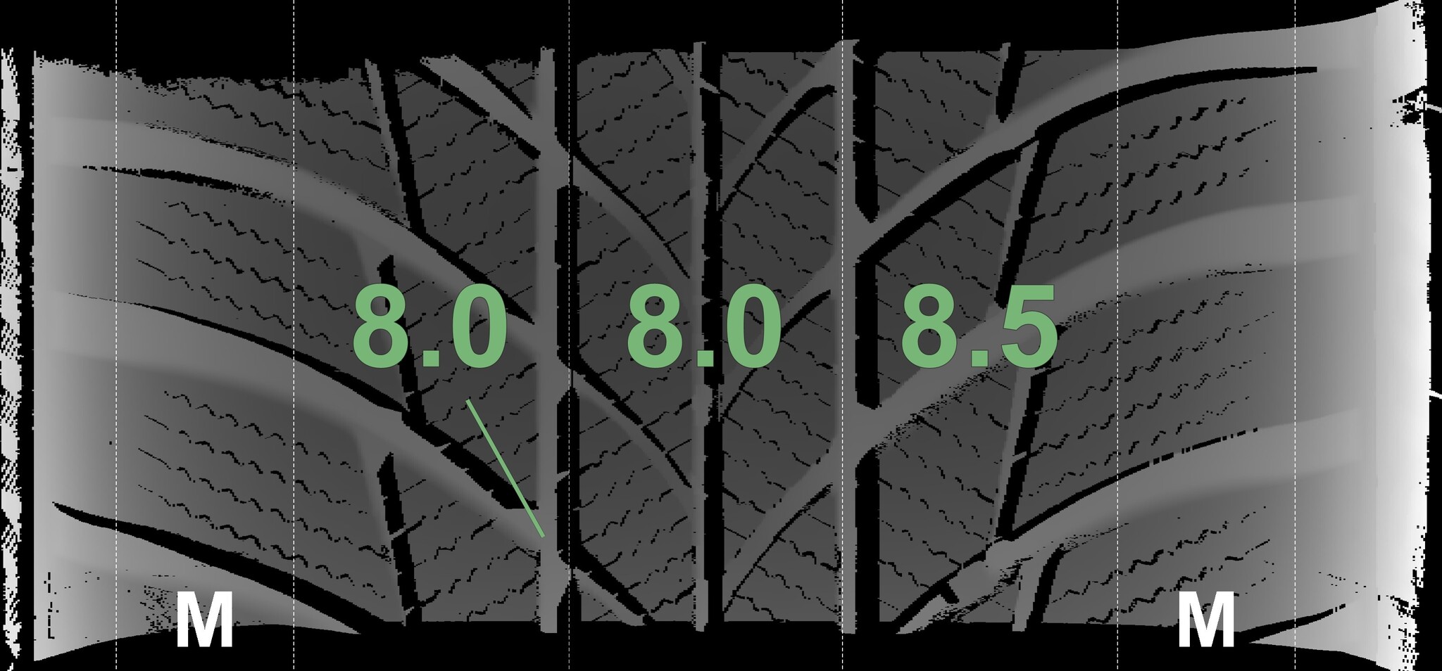The measured tread depths and details of the rims are shown above.