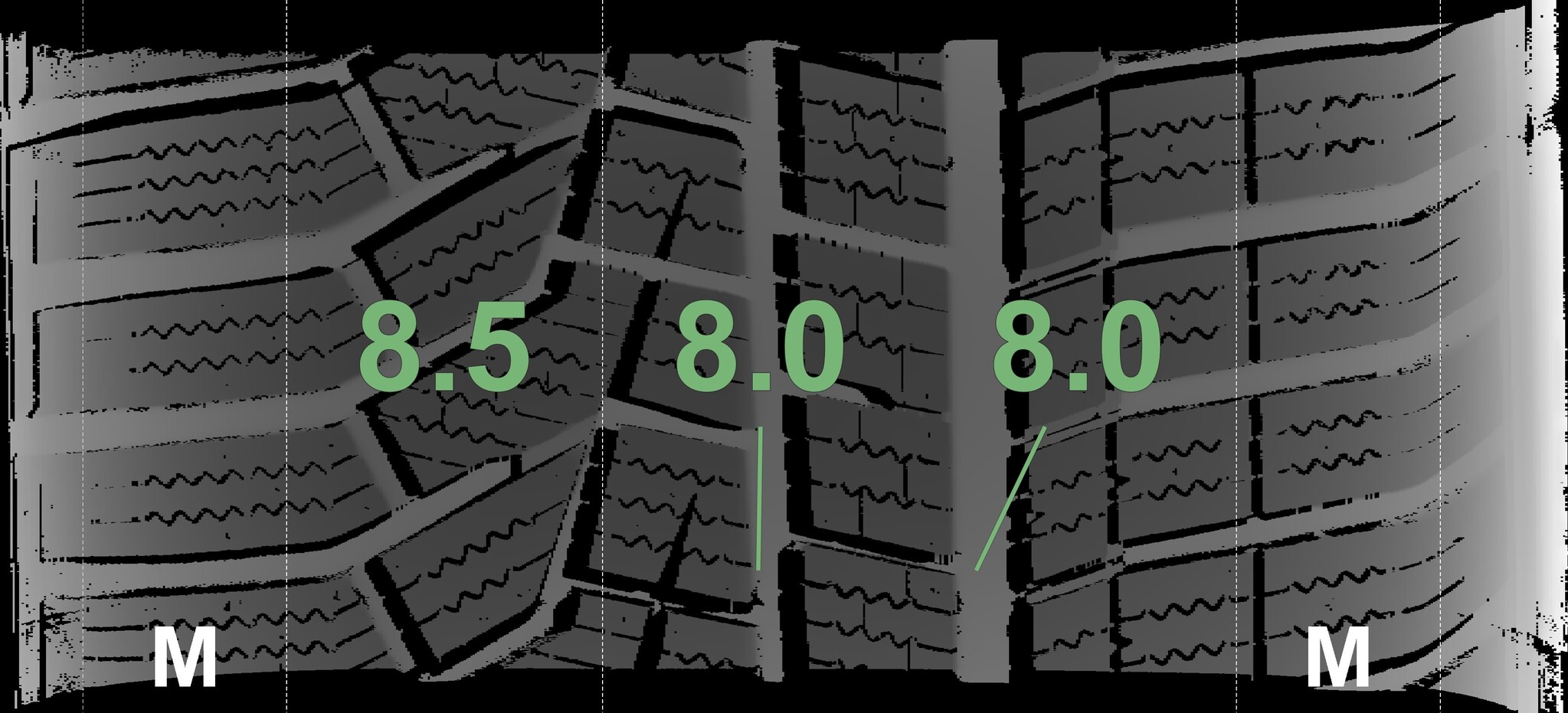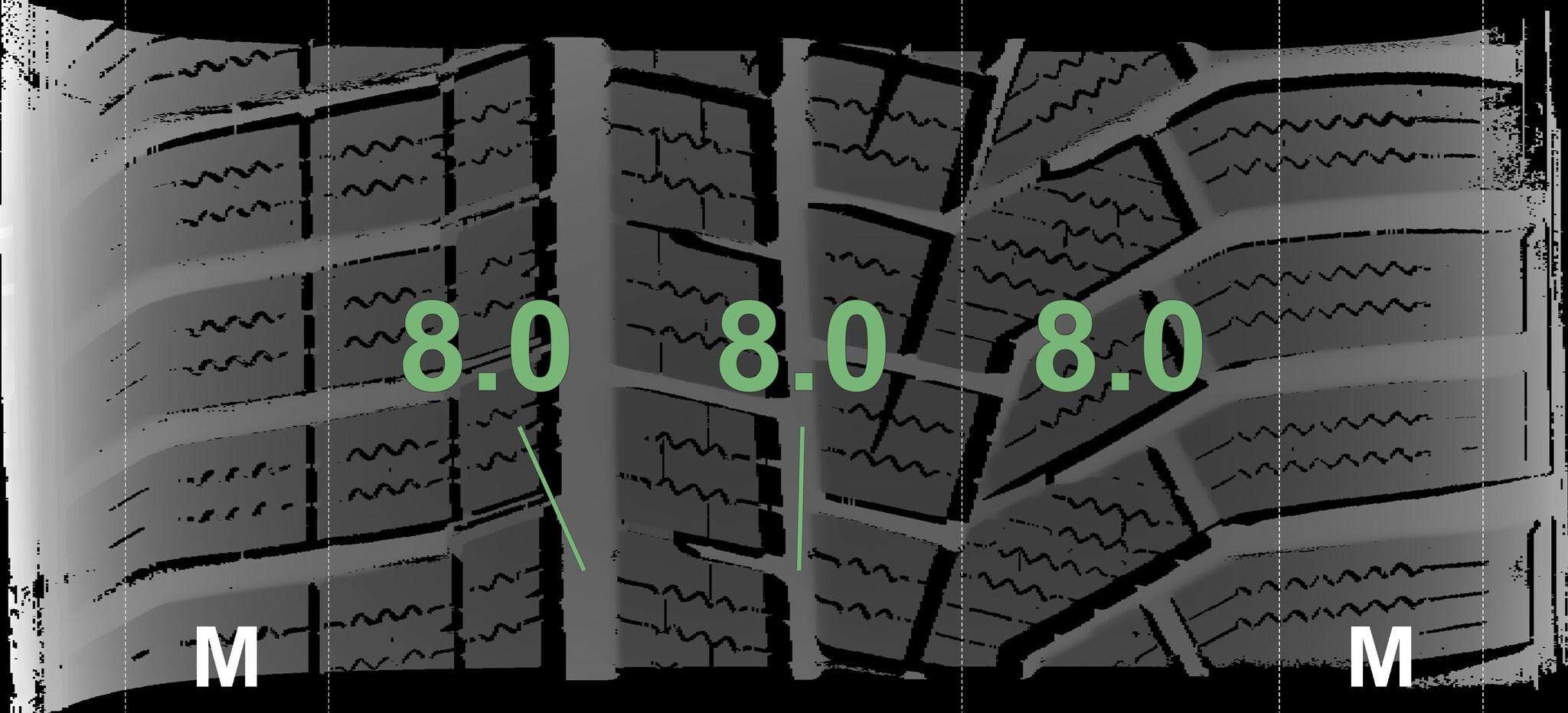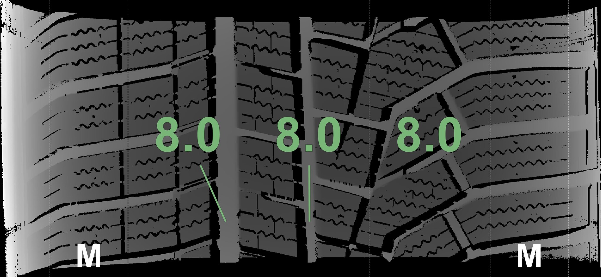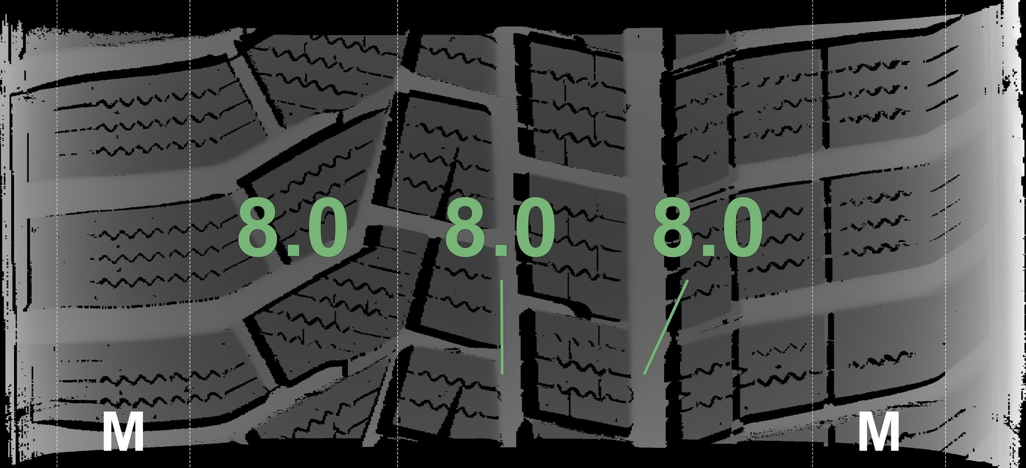 Condition | Profile depth | DOT | Front Left | New | 8.0 mm | 4424 |