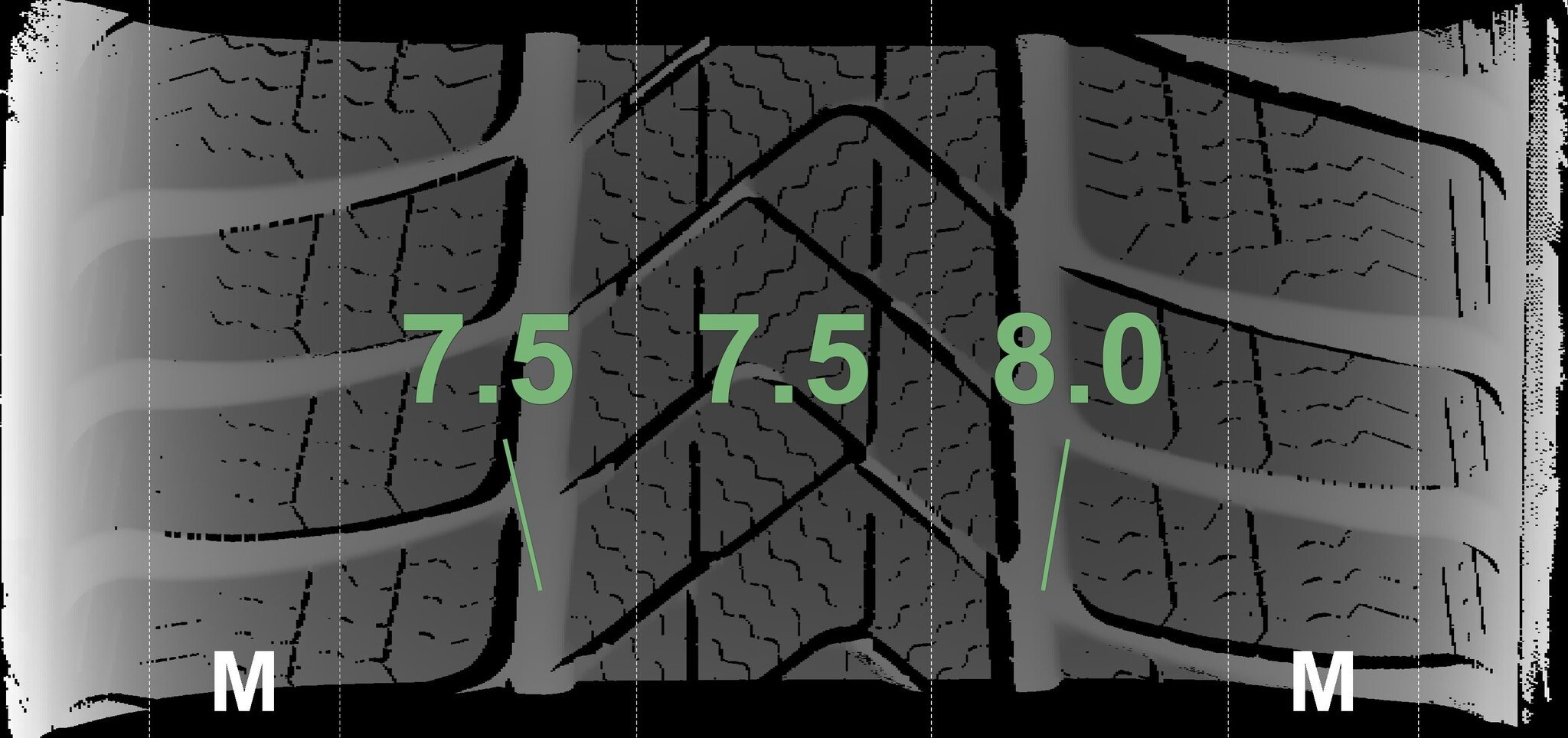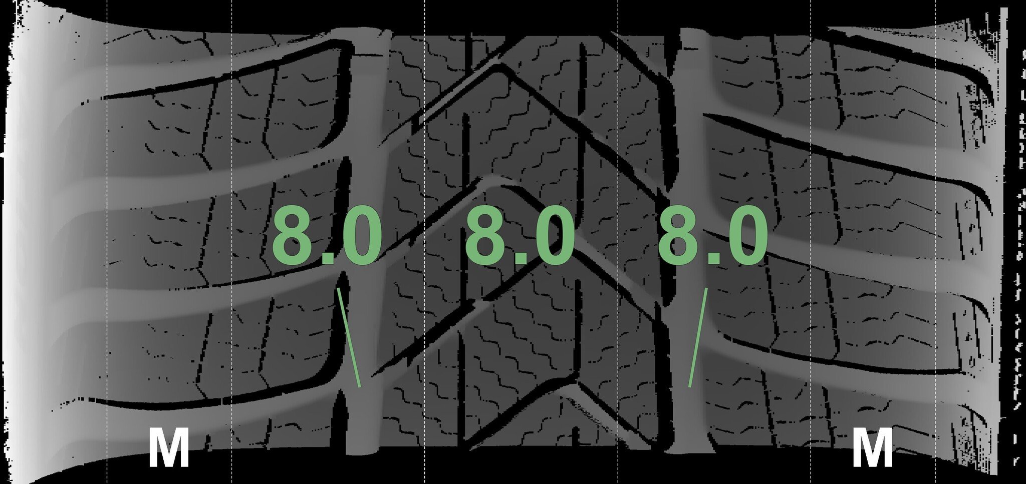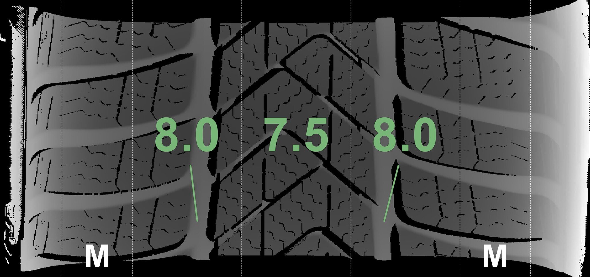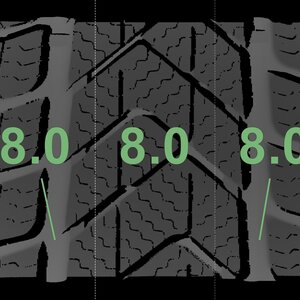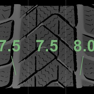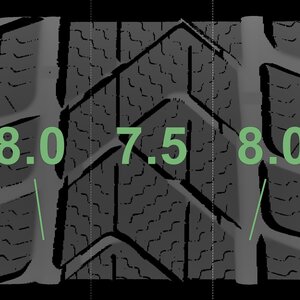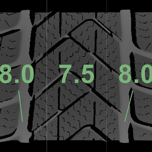 The measured tread depths and the details of the rims are shown above.