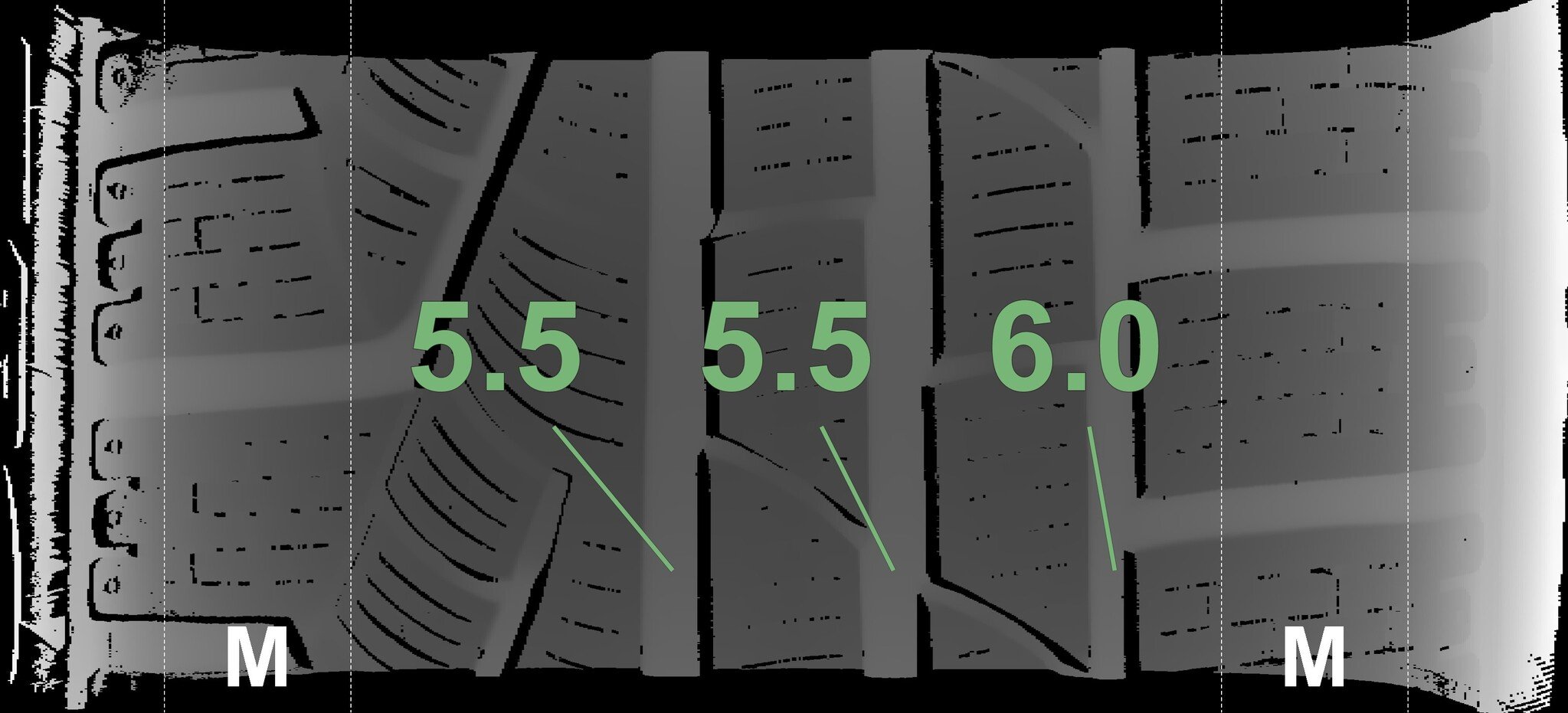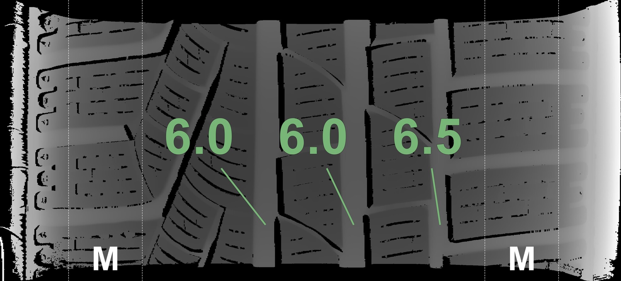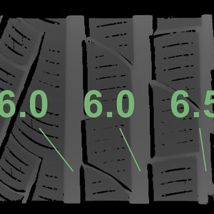 The measured tread depths and the details of the rims are shown above.