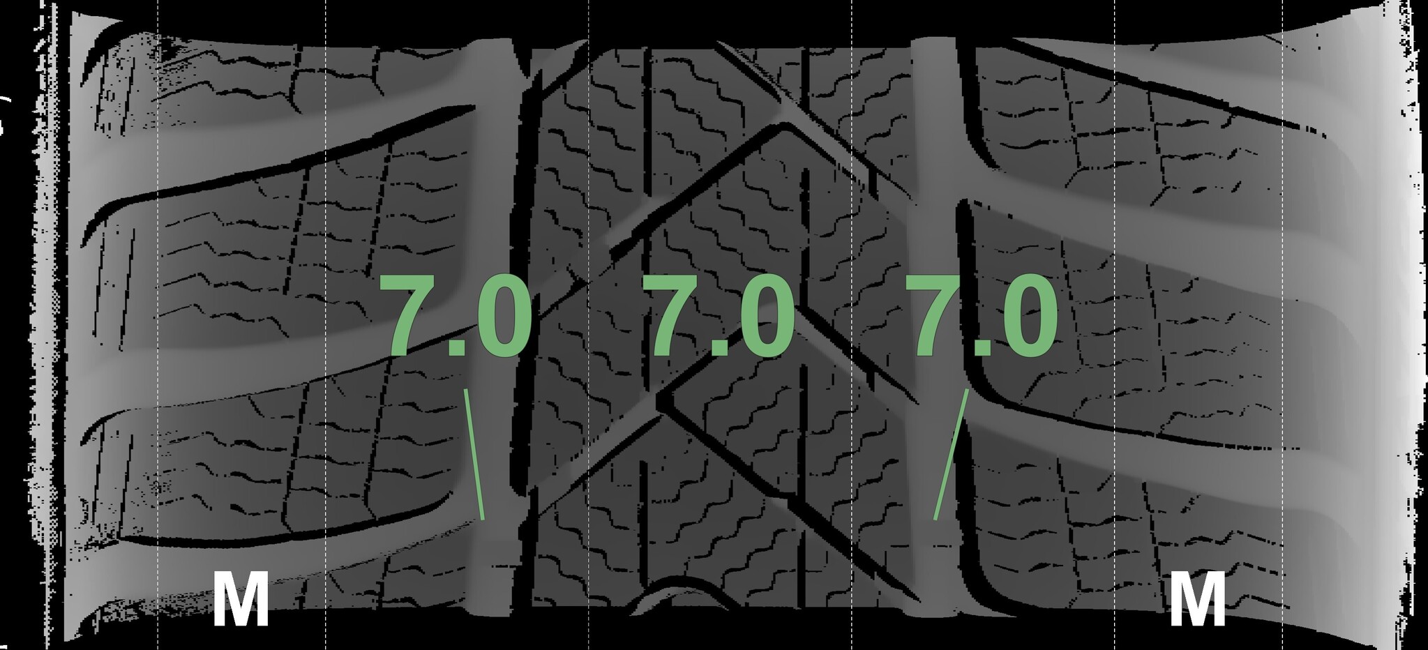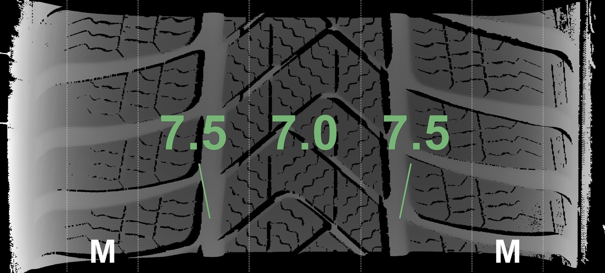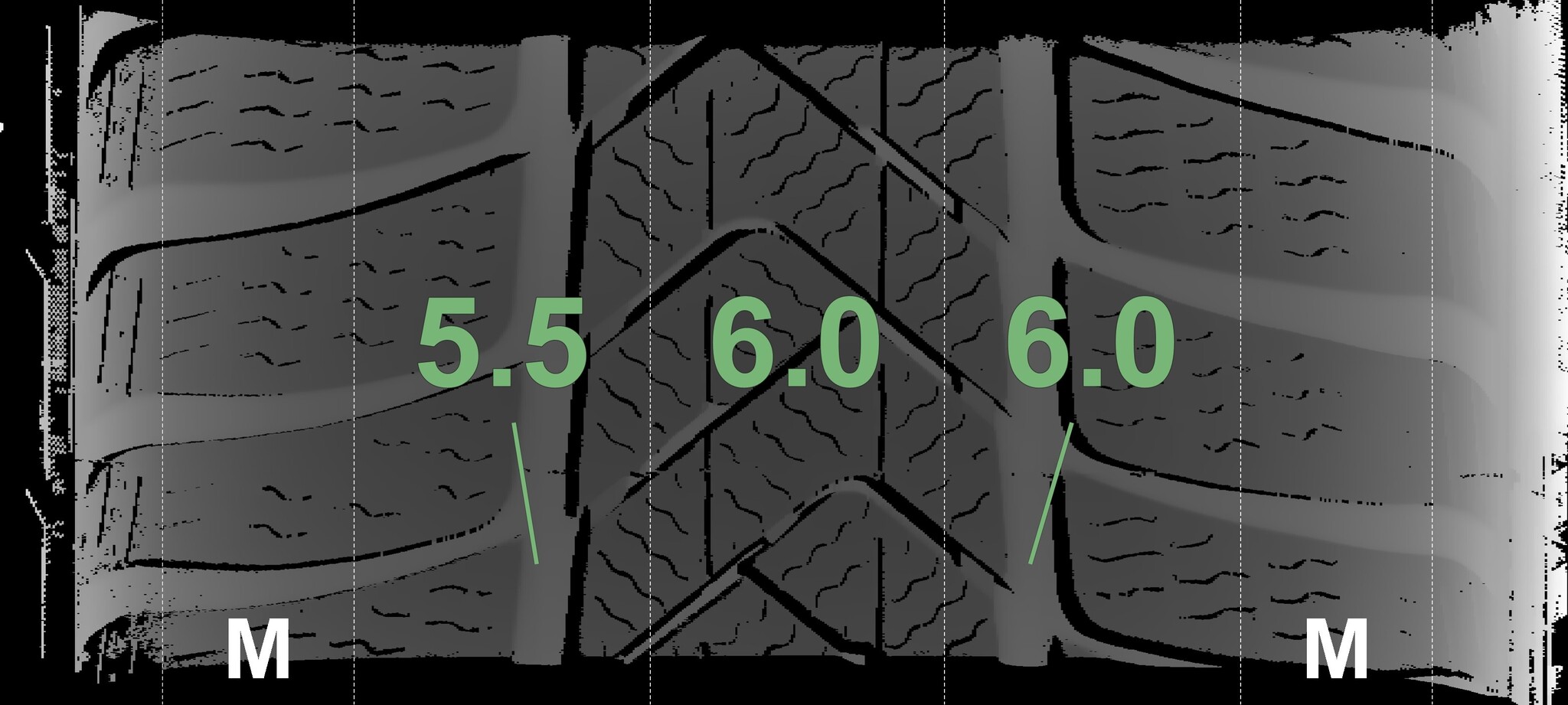 The measured tread depths and details of the rims are shown above.
