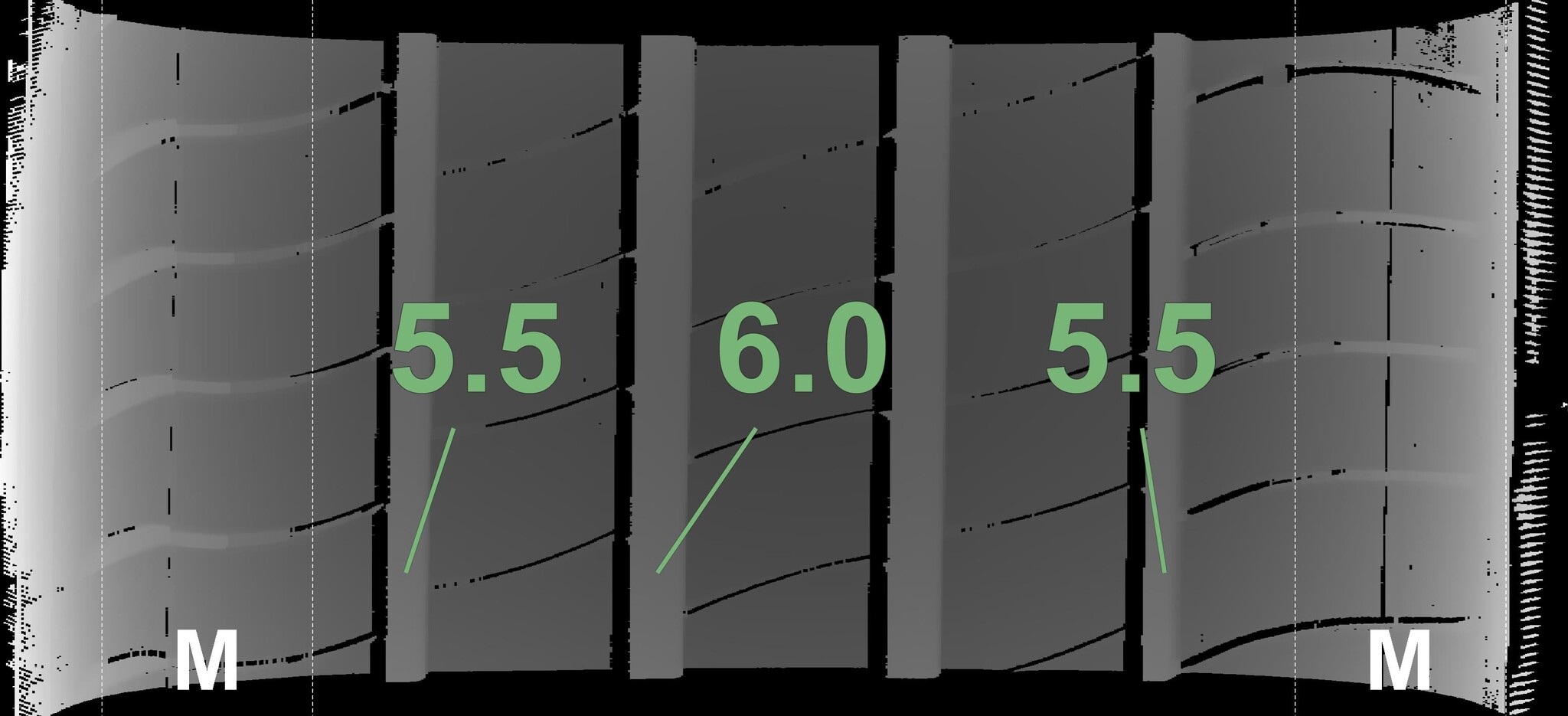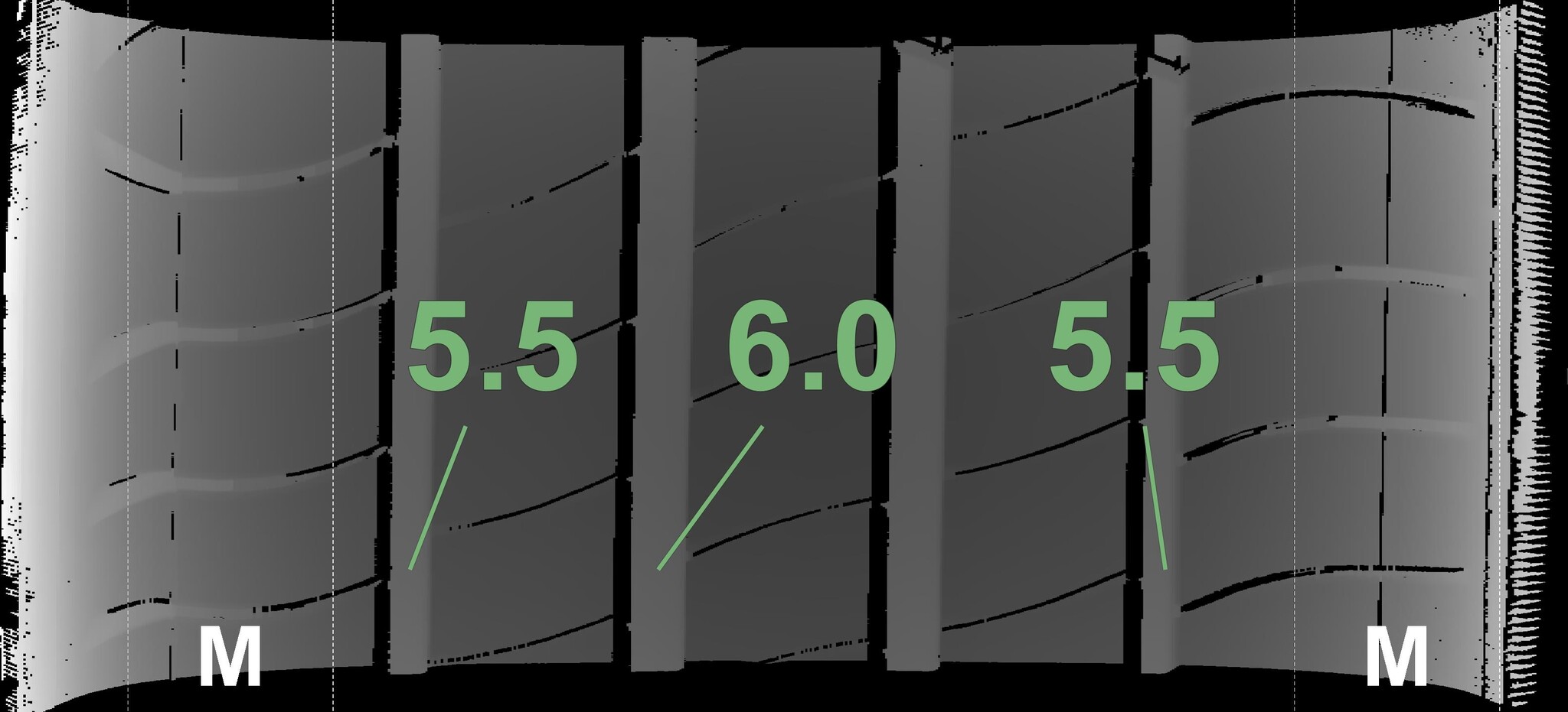 Measured tread depths and rims details are shown below.
