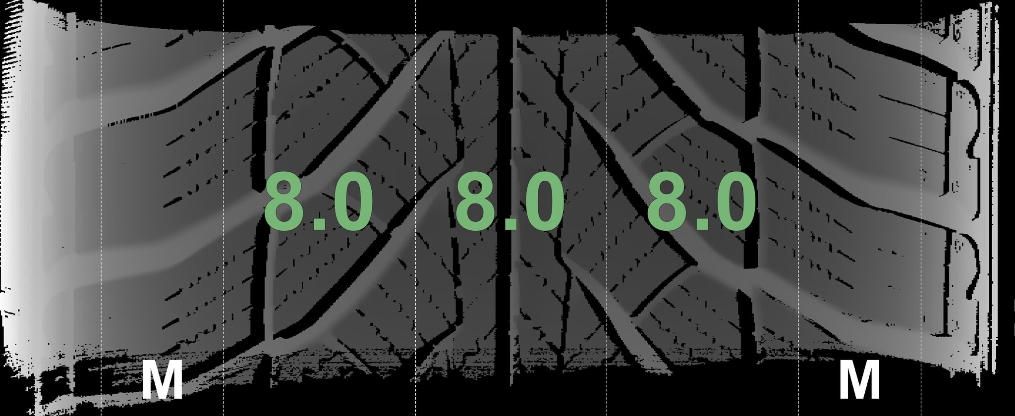 Condition | Profile depth | DOT | Front Right | Used | 7.5 mm | 3420 |