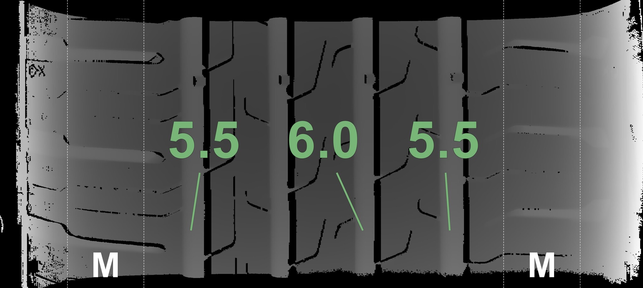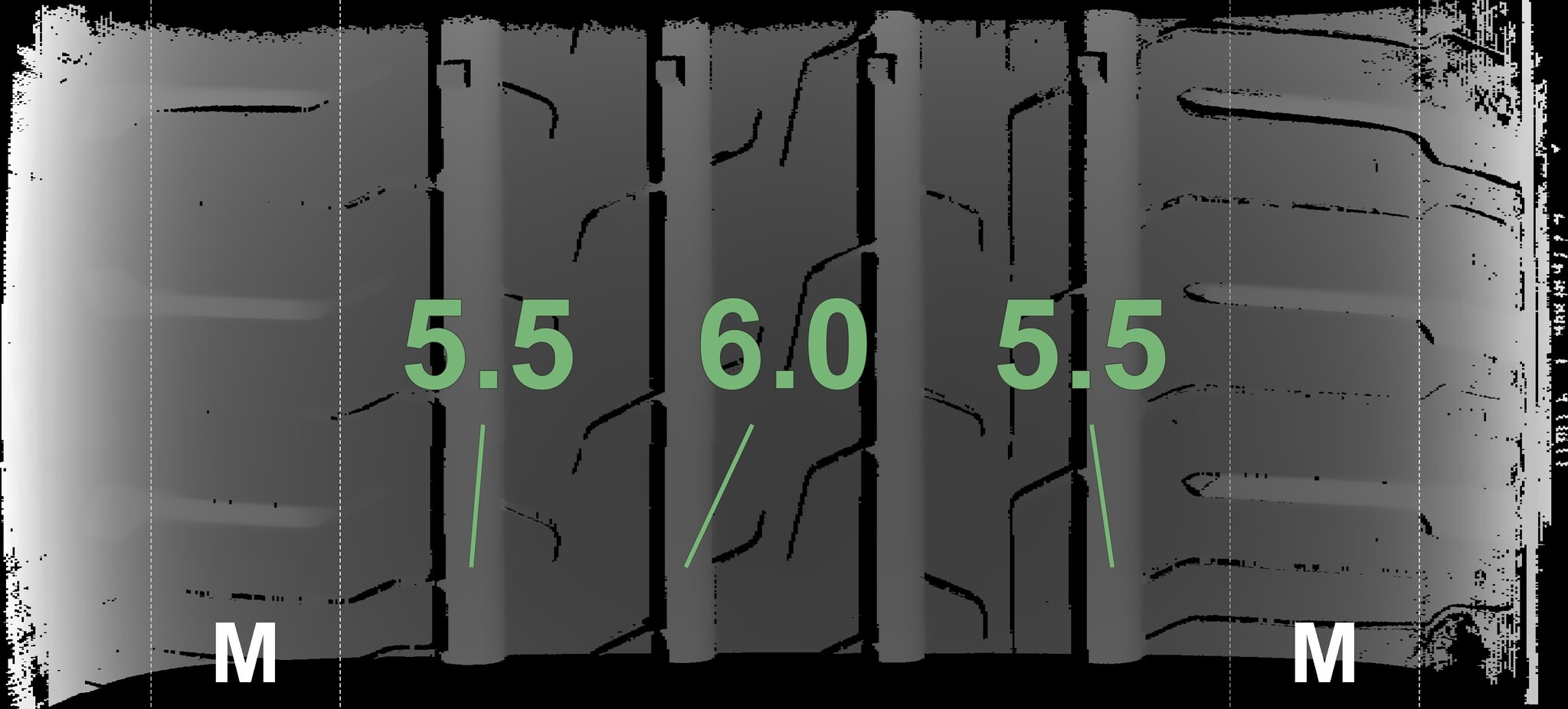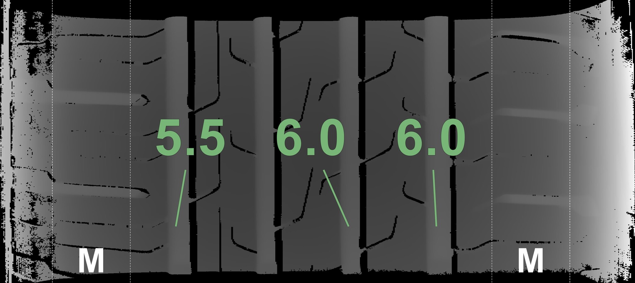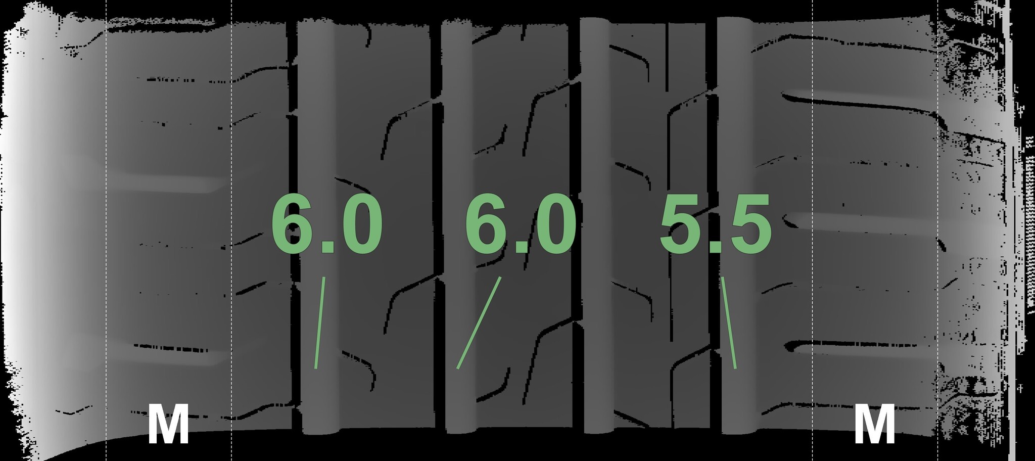 | Condition | Profile depth | DOT | Rear Right | Demo studs still visible | 5.5 mm | 4521 |