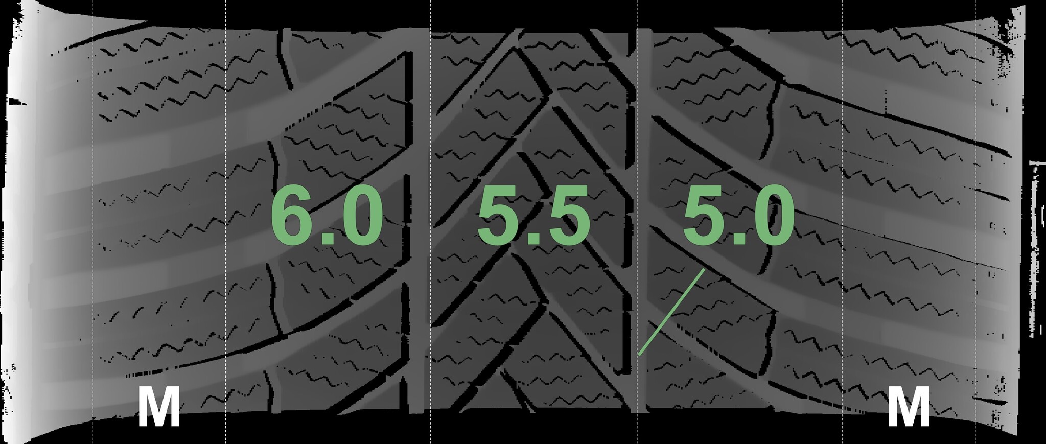 | Condition | Profile depth | DOT | Front Left | Used | 5.0 mm | 5022 |