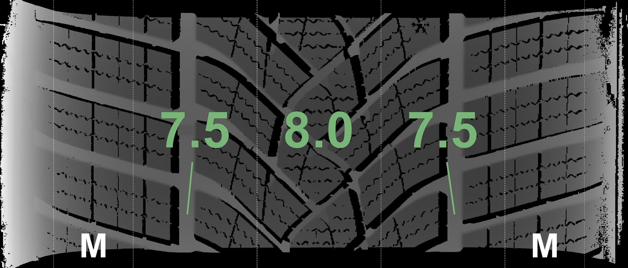 | Condition | Profile depth | DOT | Front Right | New | 7.5 mm | 2821 |