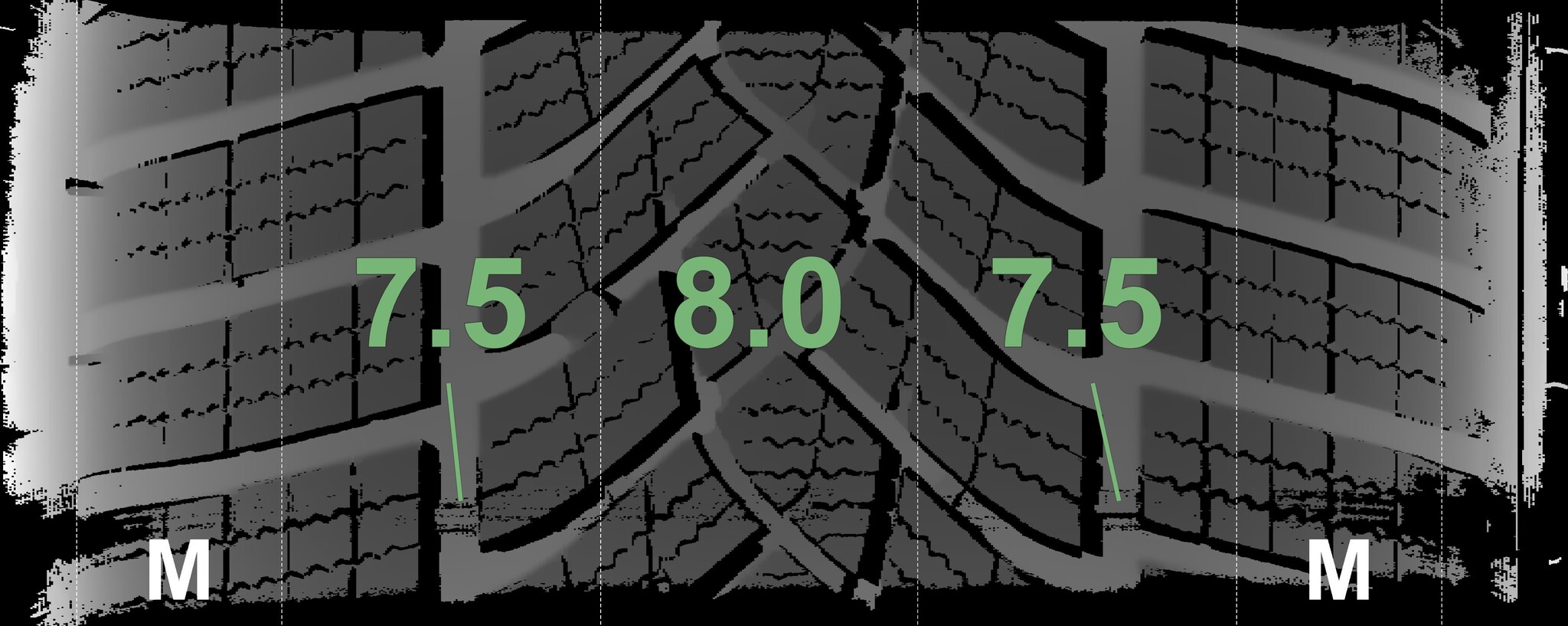 Condition | Profile depth | DOT | Front Right | Used | 7.5 mm | 2823 |