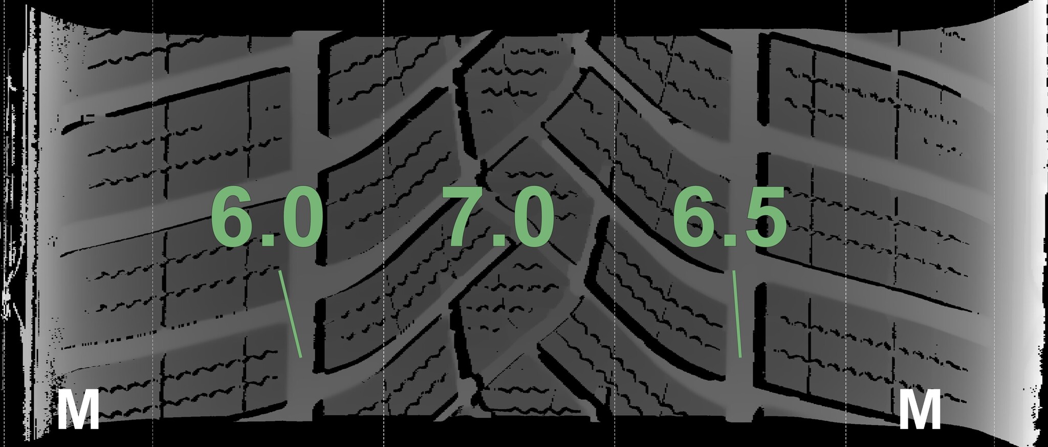 The measured tread depths and details of the rims are shown above.