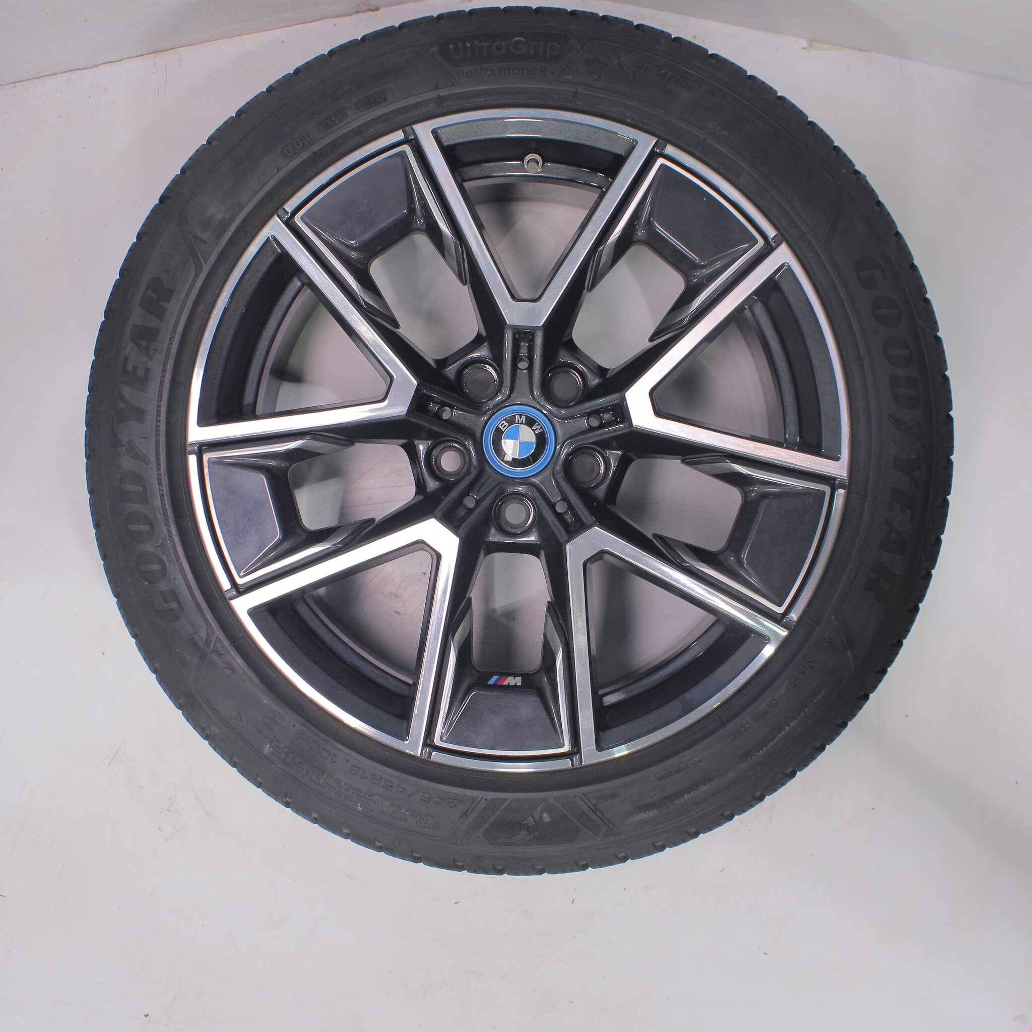 Original wheel set from BMW, styling 858M 18 inch rims with Goodyear ULTRAGRIP PERFORMANCE + Winter tires. These rims are original rims of the brand BMW and suitable for: BMW 4 series i4 G26.
