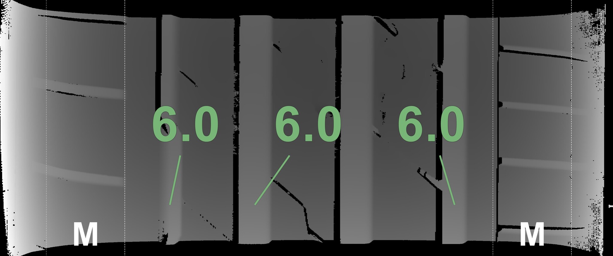 | Condition | Profile depth | DOT | Rear Right | New | 6.0 mm | 4323 |