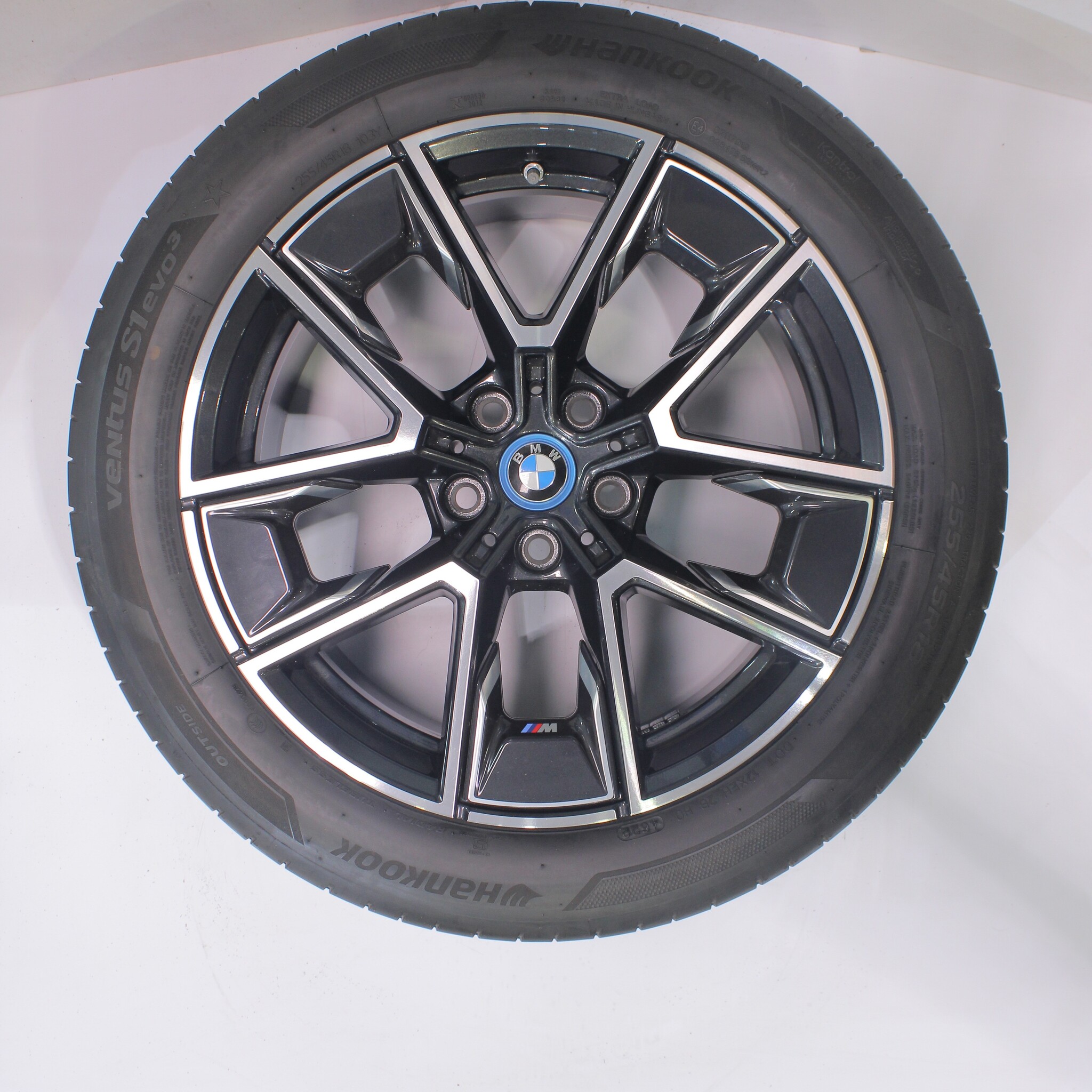 Original BMW wheel set, styling 858M, 18-inch rims with Hankook Ventus S1 evo3 Summer tires. These rims are original BMW brand rims and suitable for: BMW 4 series i4 G26.