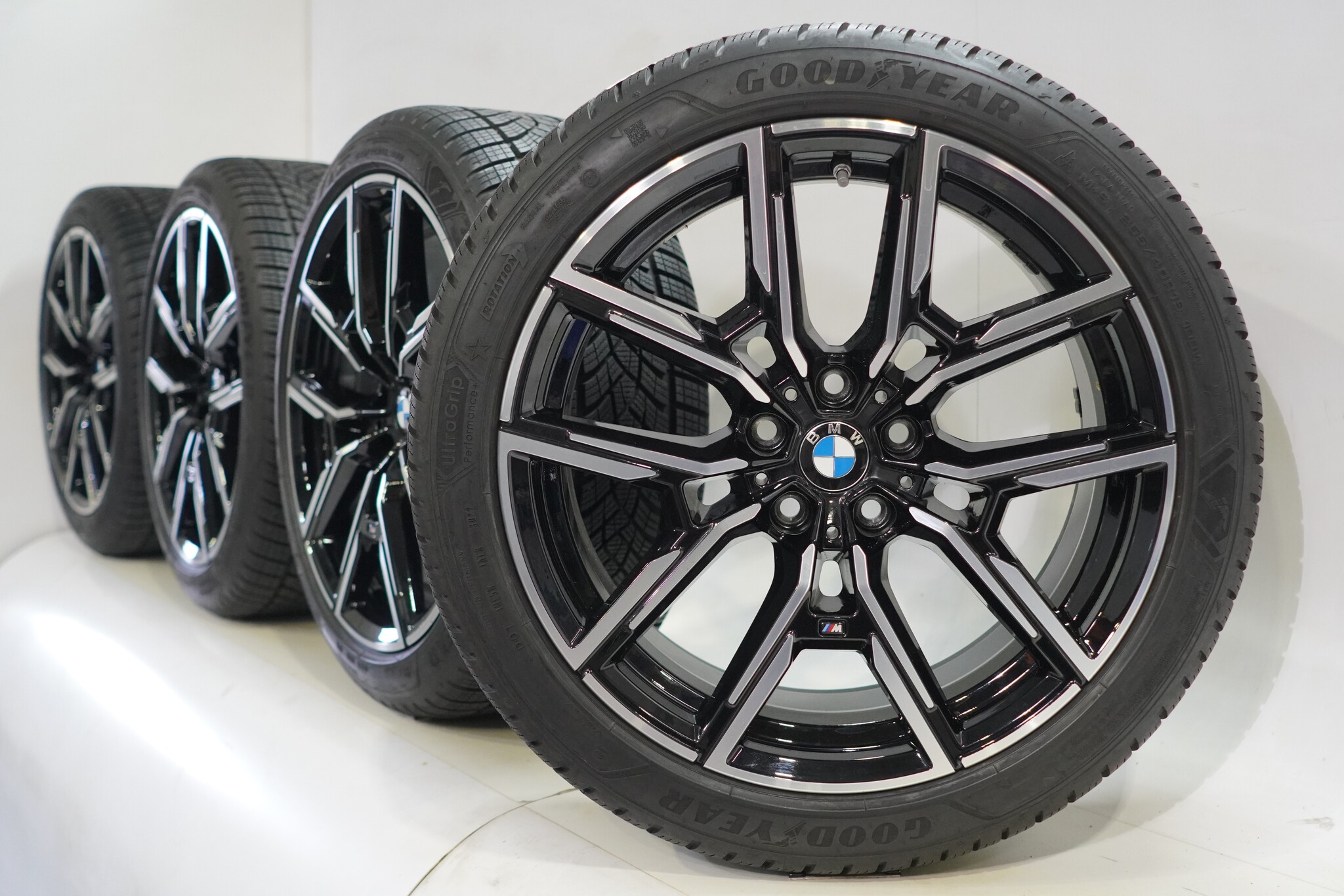 Original BMW wheelset, styling 859M, 19-inch rims with Goodyear ULTRAGRIP PERFORMANCE + winter tires. These rims are original BMW brand rims and suitable for: BMW 4 Series i4 G26.