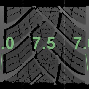 The measured tread depths and the details of the rims are shown above.