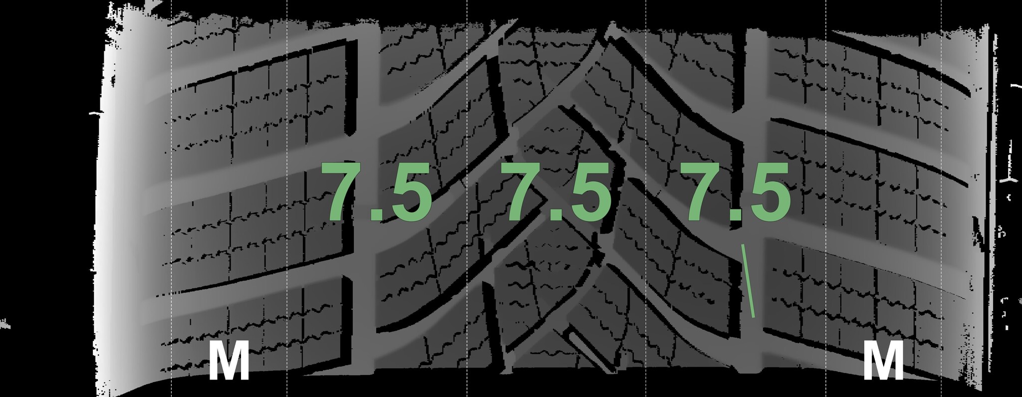 | Condition | Profile depth | DOT | Front Left | Demo nubs still visible | 7.5 mm | 5021 |