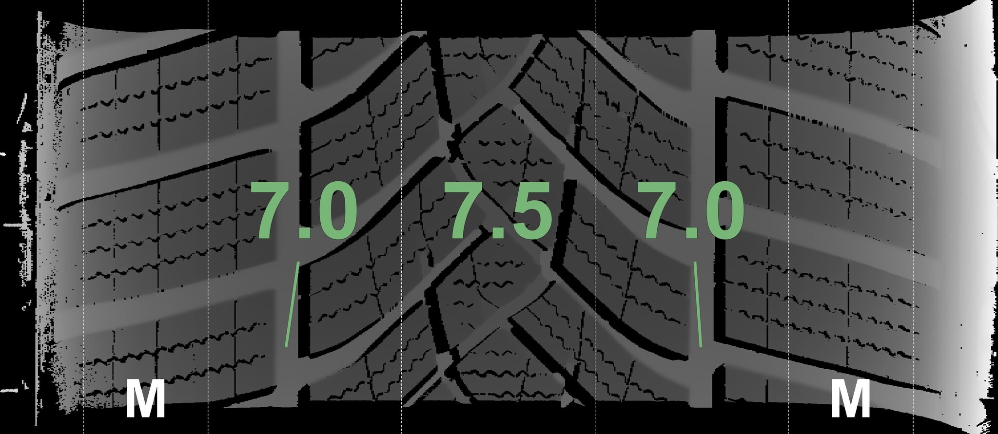 The measured tread depths and details of the rims are shown above.