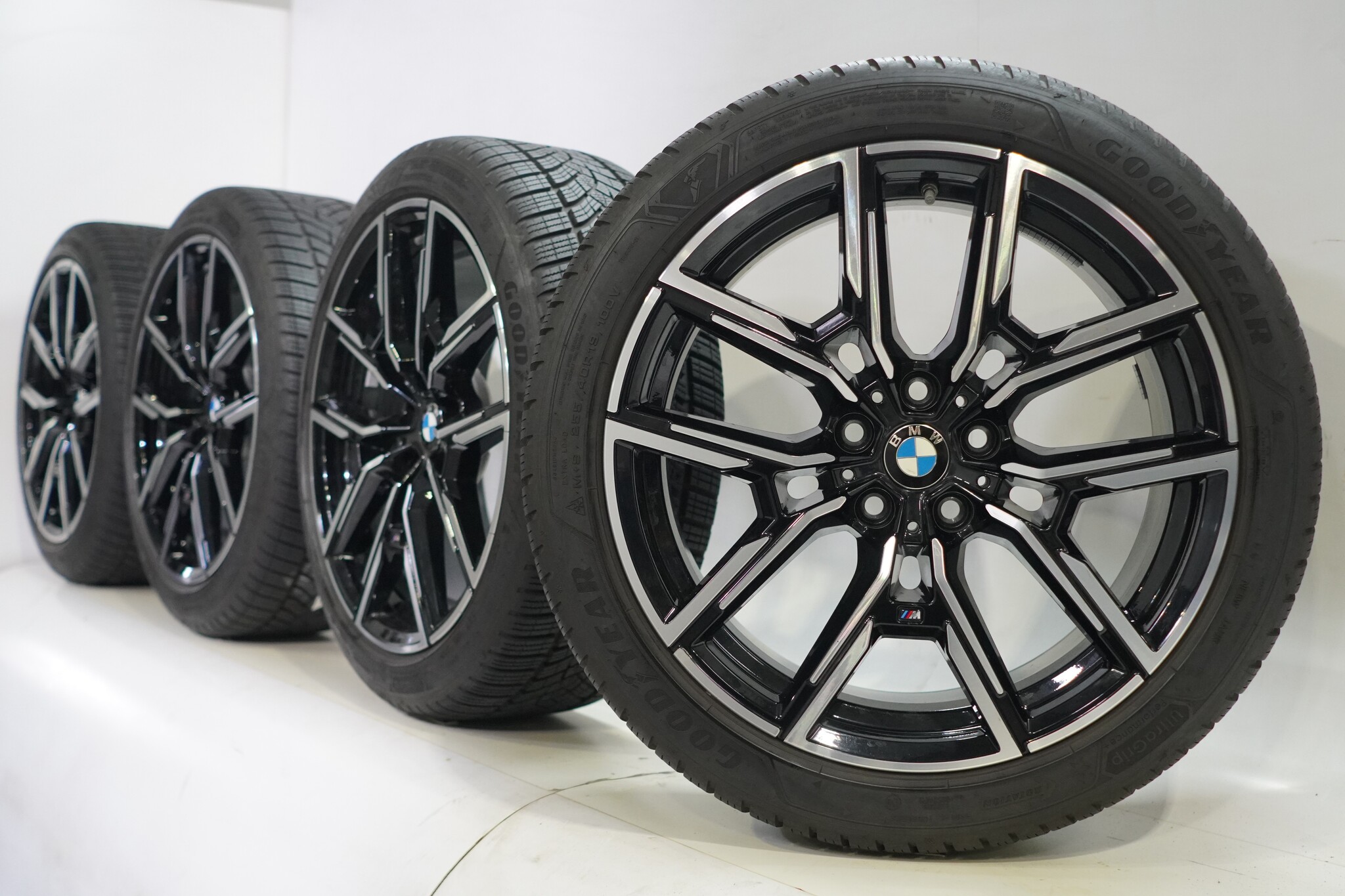 Original BMW wheelset, styling 859M, 19-inch rims with Goodyear ULTRAGRIP PERFORMANCE + winter tires. These rims are original BMW brand rims and suitable for: BMW 4 Series i4 G26.